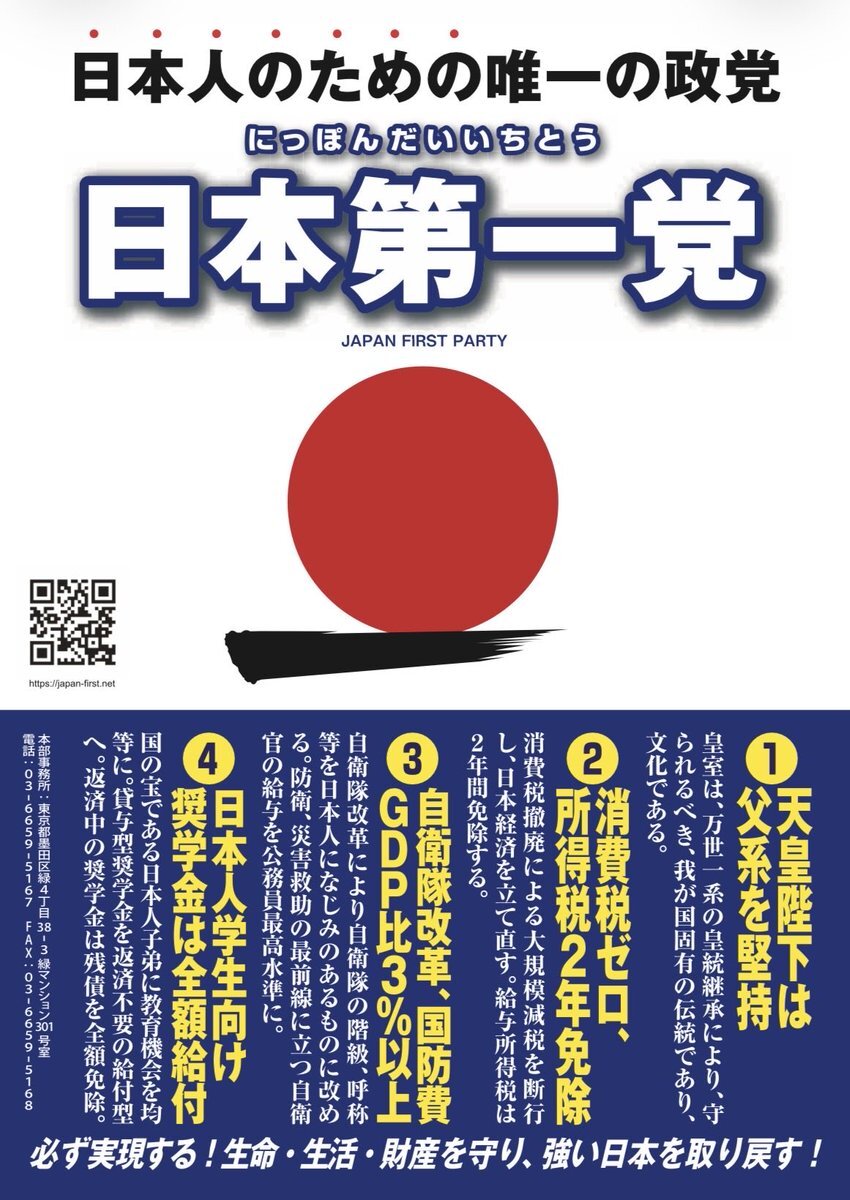 一緒に戦いましょう!🇯🇵 新しい時代を創りましょう!🇯🇵 #日本第一党 #移民政策大反対 #日本第一主義 #日本第一党と共に日本を変えよう #多文化共生反対 #外国人参政権反対 #外国人生活保護反対 #積極財政 #消費税廃止 x.com/realhondakaori…