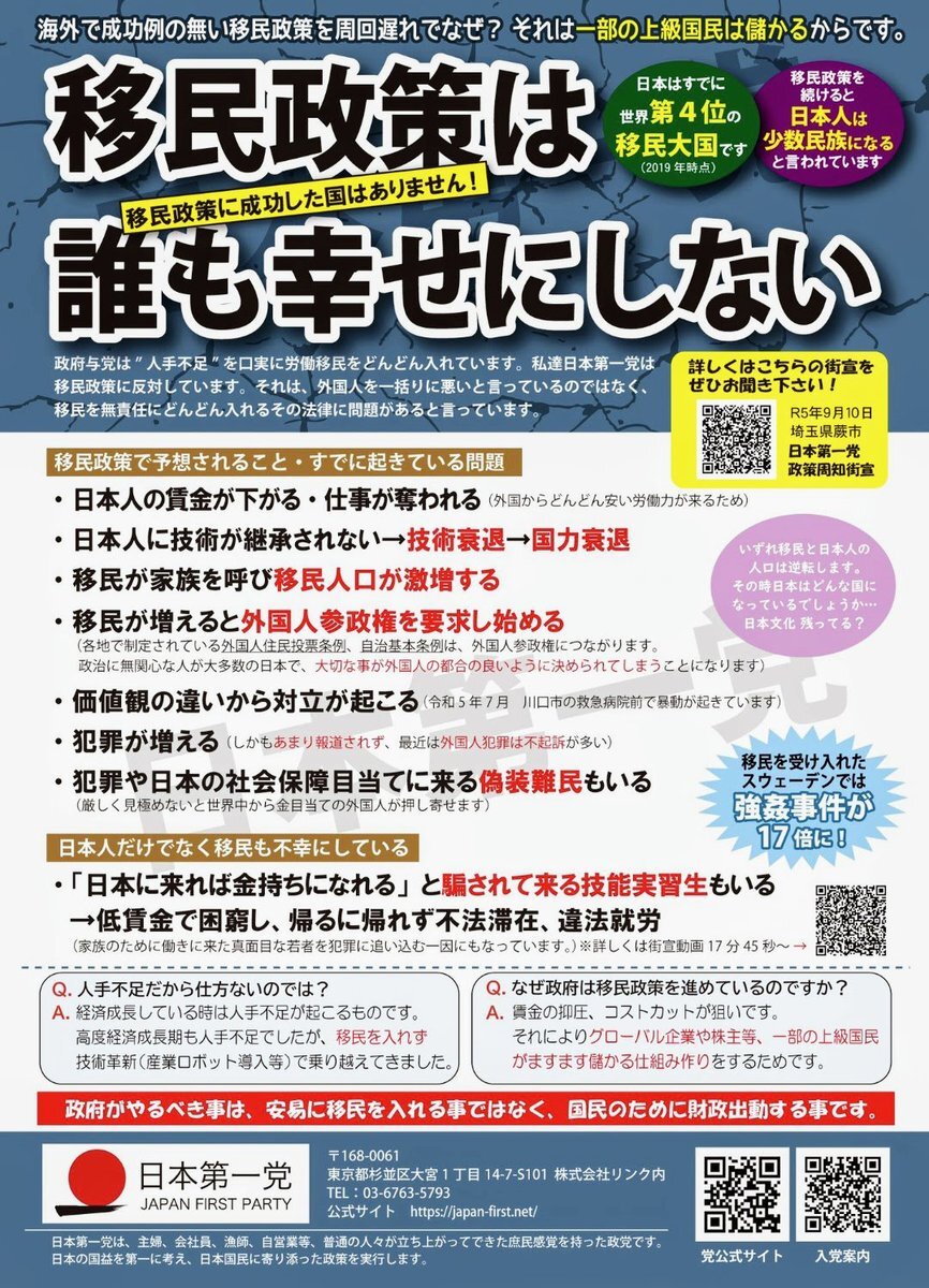 支那・クルド・アフリカ・ムスリム・・・郷に従えない外国人は日本に来るな‼️💢 #日本第一党 #移民政策大反対 #日本第一主義 #日本第一党と共に日本を変えよう #多文化共生反対 #外国人参政権反対 #外国人生活保護反対 #積極財政 #消費税廃止 pic.x.com/7YgHTotaTj