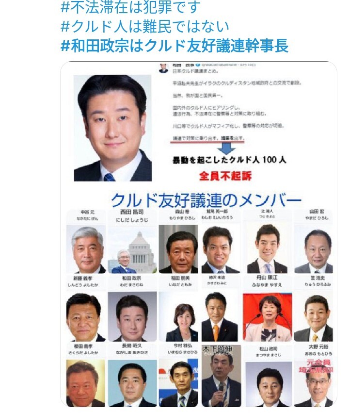 返信先:@ishiitakaakiクルドの強制送還は、進んでないのですか?😰 もう、1人も居なくなればよいのに。 #埼玉クルド人問題 #クルド人は不法滞在 #不法滞在は犯罪 #クルド人は難民じゃなくて出稼ぎ不法移民 #クルドカー #迷惑外国人 #外国人犯罪 #ヤード #移民断固反対 #強制送還