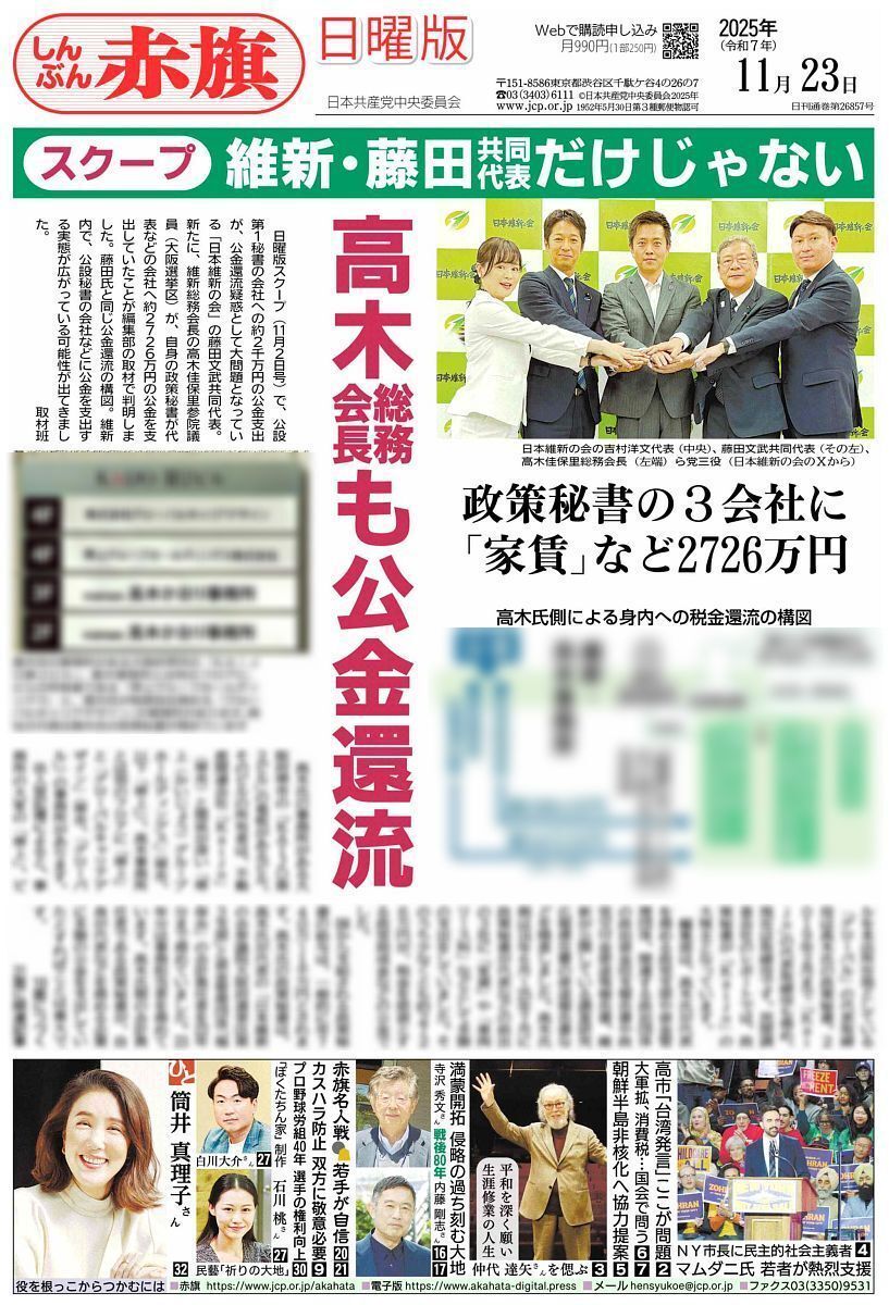 【スクープ速報】 維新・藤田文武共同代表の公設第1秘書が代表を務める「リ・コネクト」社への新たな公金支出が編集部の調べで判明しました。 ①「日本維新の会」本部が2019年4月に「チラシ印刷」として政党助成金85万9595円