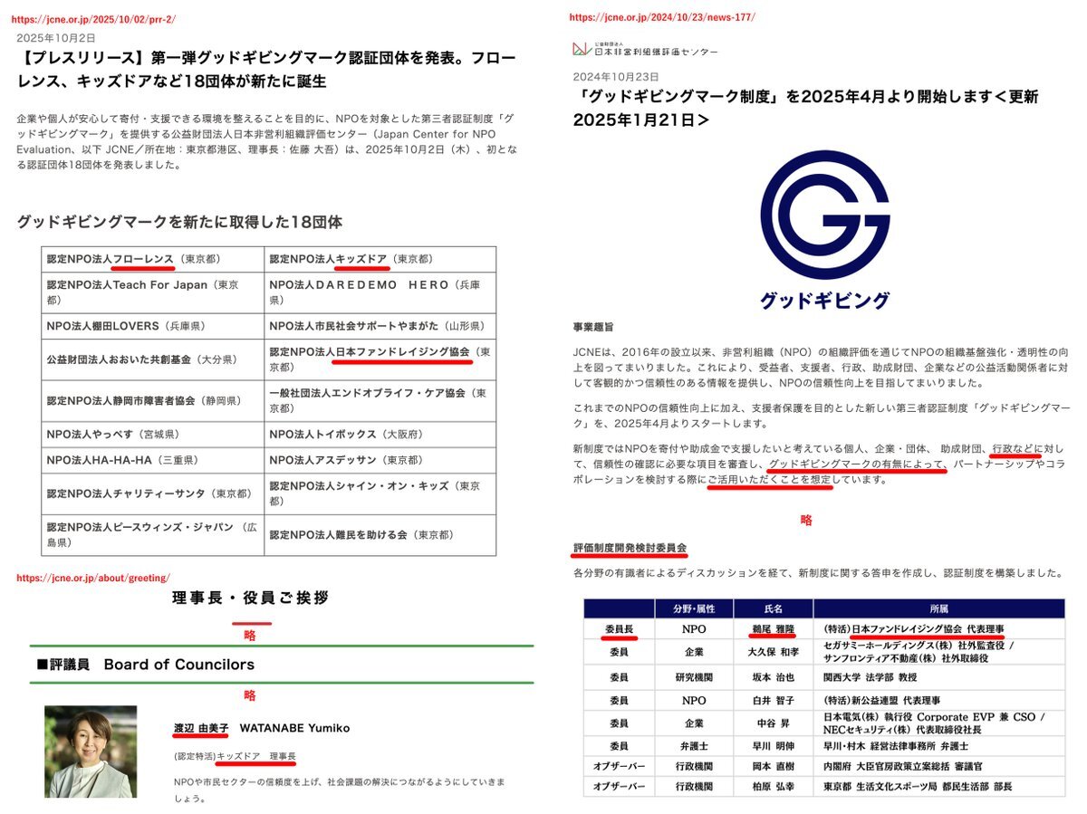 日本非営利組織評価センター「NPOグッドギビングマーク認証第一弾はフローレンスとキッ…… ✋ちょっと待って! キッズドアは代表がセンター評議員 日本ファンドレイジング協会は代表が評価制開発の委員長だよ! 認証する側の要職者と認証される側のトップが【同じ】っておかしいんじゃないかな!?
