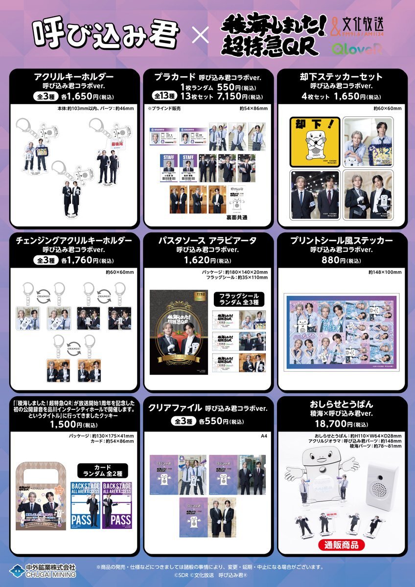 【商品情報】 #小笠原海 さんと #船津稜雅 さんによるラジオ番組 『#稜海しました!超特急QR 』のグッズを画像付きでご紹介します。 ・アクリルキーホルダー 呼び込み君コラボver. ・プラカード 呼び込み君コラボver. ・却下ステッカーセット 呼び込み君コラボver. ・プリントシール風ステッカー pic.x.com/OrlBcUUjbq
