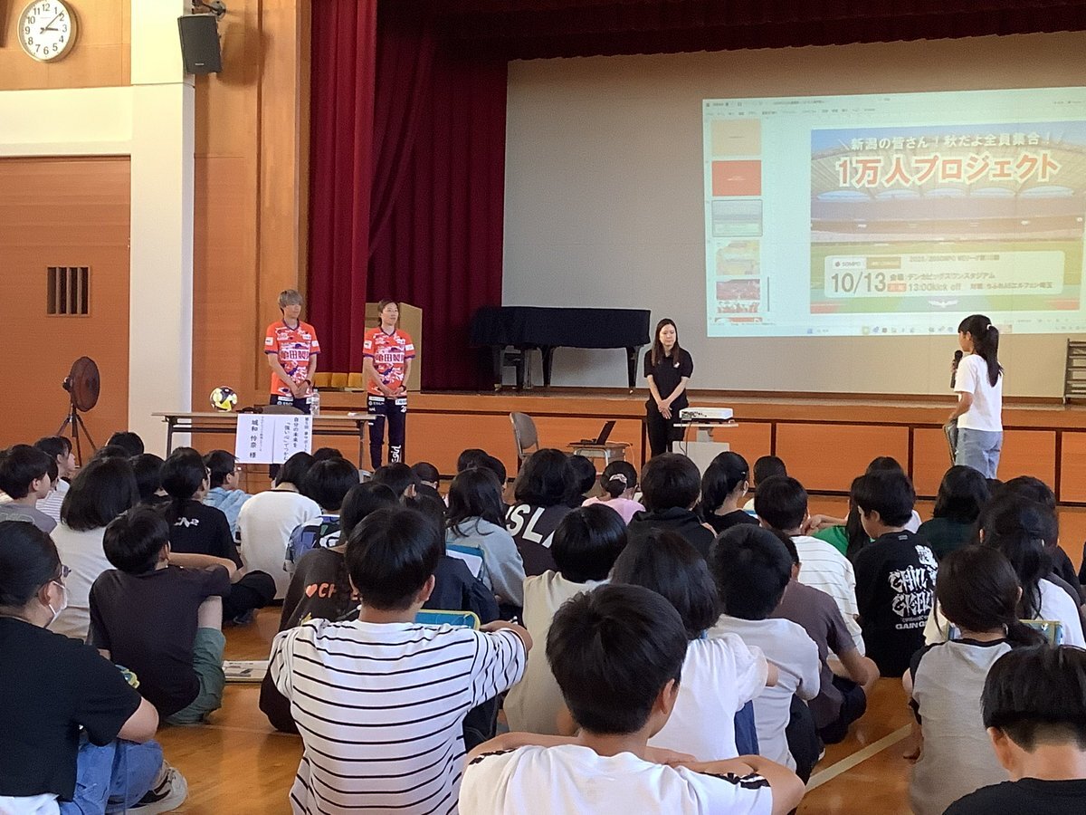 / 10/13(月祝)EL埼玉戦 1⃣0⃣0⃣0⃣0⃣人 #種まきプロジェクト 実施中🌱 \ #新潟市立女池小学校#新堀華波 選手と #久野吹雪 選手が訪問しました🏫 6年生対象にキャリア教育の授業を行わせていただき、夢を叶えるために努力したことなどをお話させていただきました☺ pic.x.com/Z24bE7BTuI