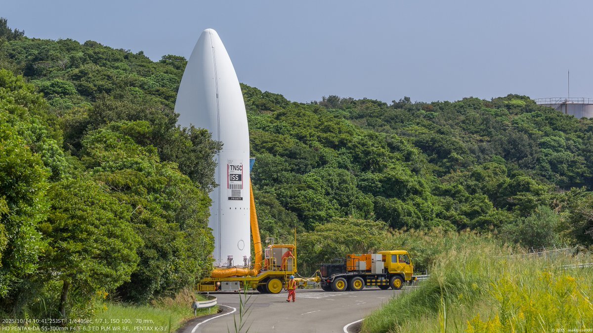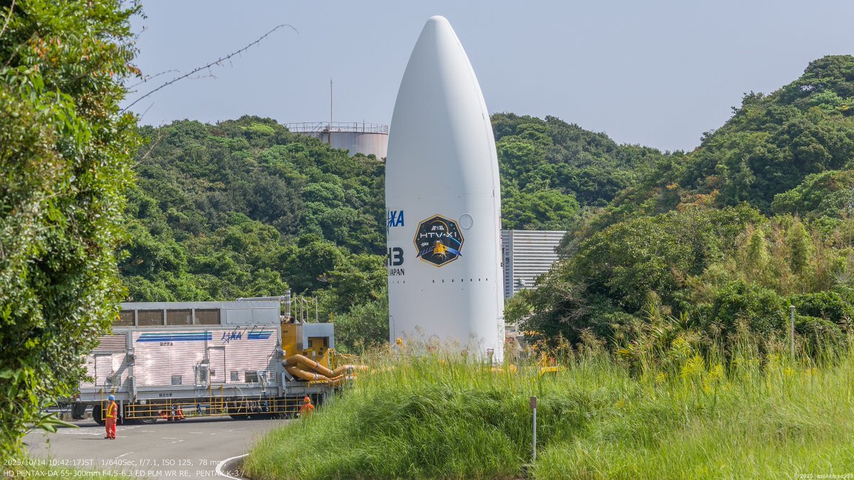 10月14日 10:41~10:42 H3ロケット7号機 フェアリング(HTV-X 1号機)のVABへの移動。#H3F7 #HTVX #種子島宇宙センター pic.x.com/00RcfOm2ly