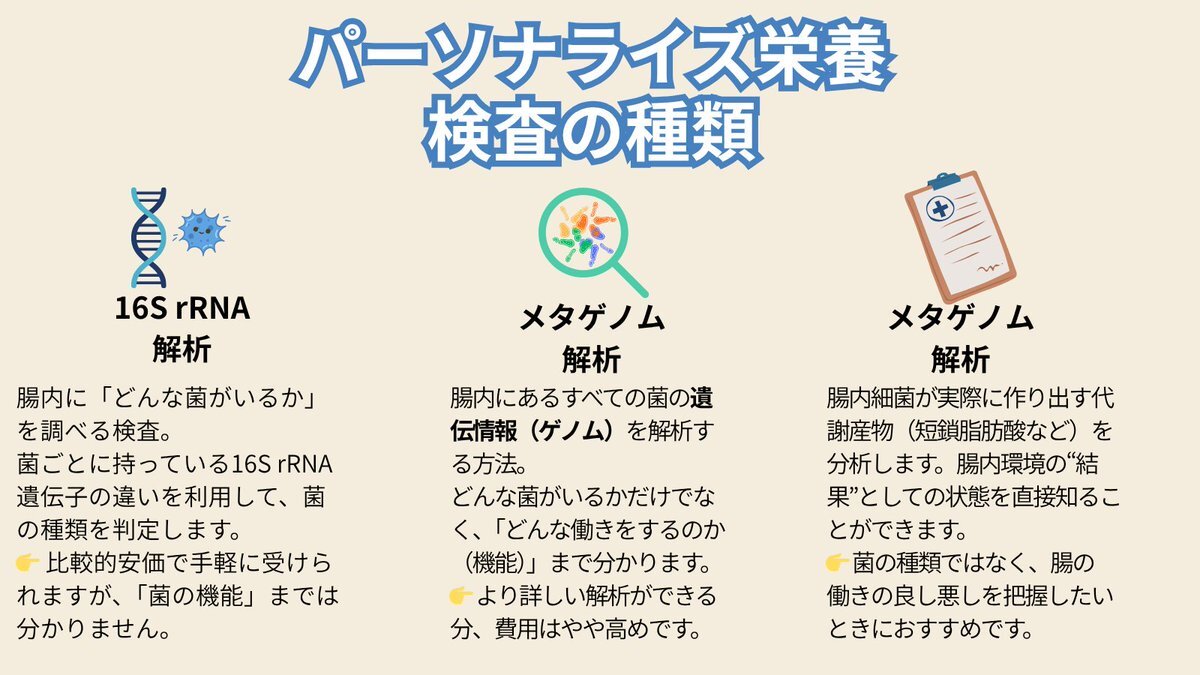 パーソナライズ栄養:検査の種類編 #腸内フローラ検査 にはどんな #種類 があるの?📊 主な検査タイプ: 🔬 #16SrRNA解析 (菌の種類を知る)🔬 #メタゲノム解析 (菌の働きまで知る) 🔬 #代謝物解析(腸が実際にどう働いているかを知る) 詳しさと価格のバランスで選ぼう💰 pic.x.com/dveMi4KMzE