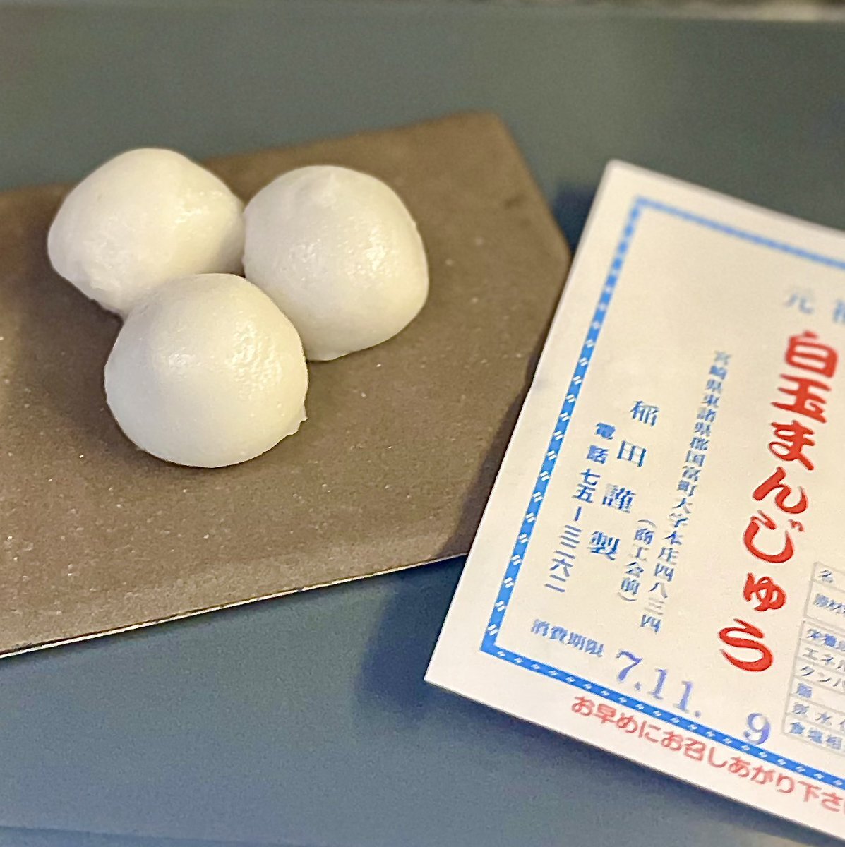 #菓子案内 今朝は、#国富 まで路線バスで40分くらい。幻の郷土菓子と言える #白玉饅頭 を求めて。まずは、#稲田白玉まんじゅう店 さんへ。ブルーに白玉の包装紙が印象的で、忘れられない。 pic.x.com/SrQQ9h2VmK