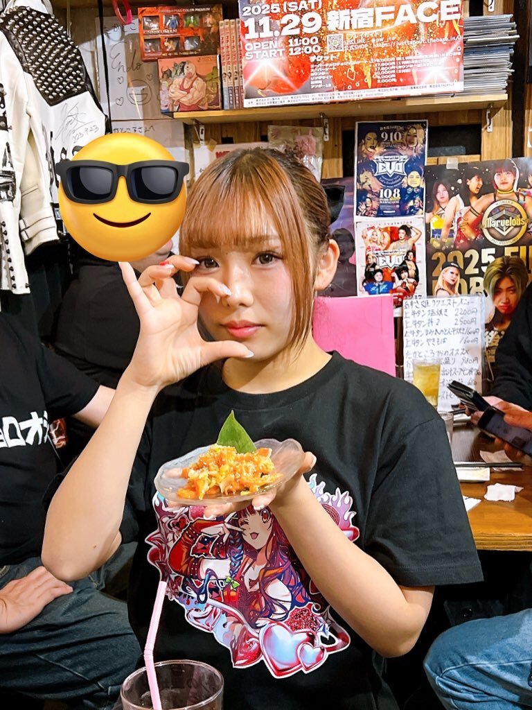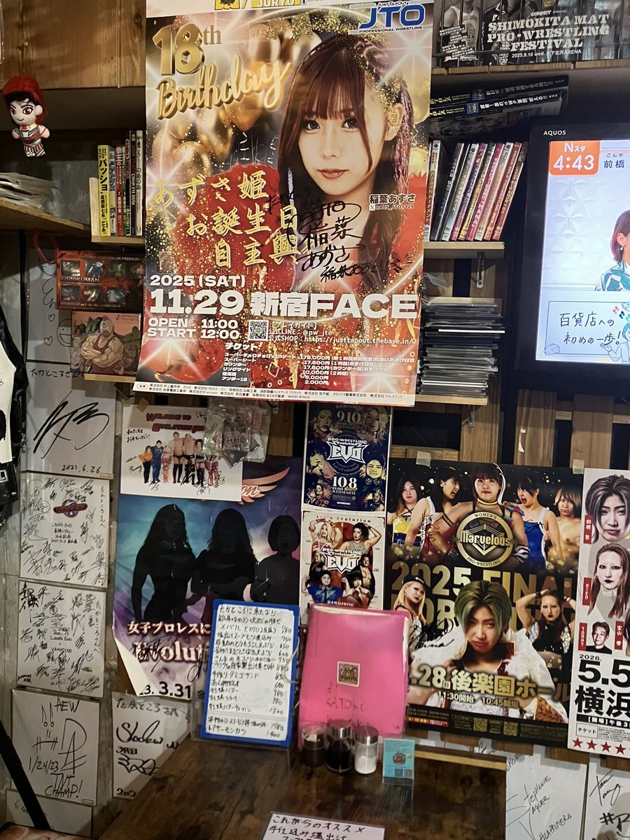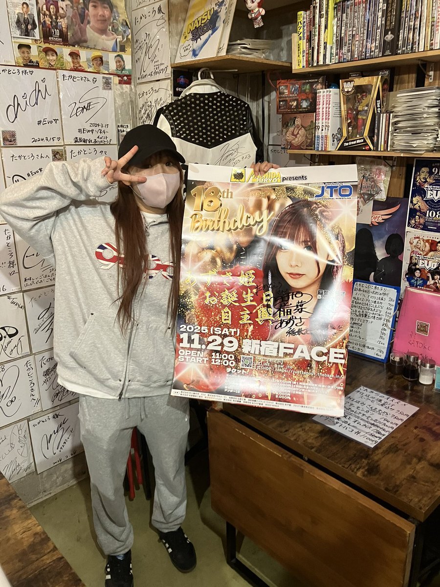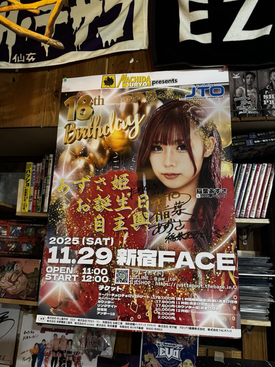 そういえば昨日仕事帰りに見てきました!😊 11.29の昼は新宿FACEであずさ選手18歳の生誕祭!🎂 まだ17歳で全国で多方面に活動していて本当に凄い✨️ 肉汁餃子気になります🤤 昨日は寄れませんでしたが、まるシカクさんまた寄らせて頂きます😊 #pw_jto #稲葉あずさ #まるシカク #稲葉あずさ自主興行 pic.x.com/8dmKdx5nnY