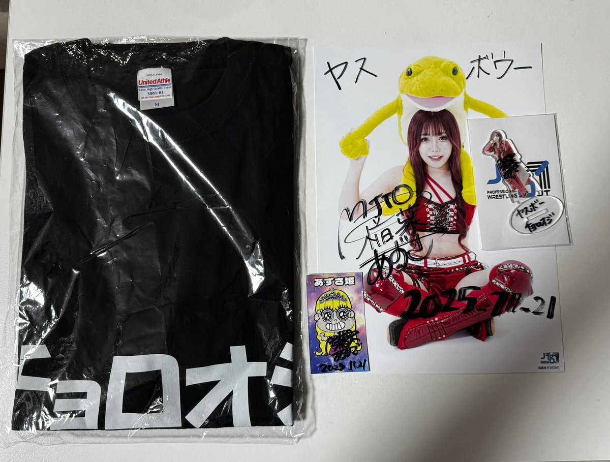 あずさ姫から直接購入したグッズ!😆 チョロオジTシャツはペンが黒しか無かったのでサイン入れてもらえなかったけど😂いつかイベントがある時に入れてくれるとの事だったので電車で着る試練を乗り越えてw頑張ります🤣 #あずさ姫 #稲葉あずさ 選手 pic.x.com/2tt6o5scD8
