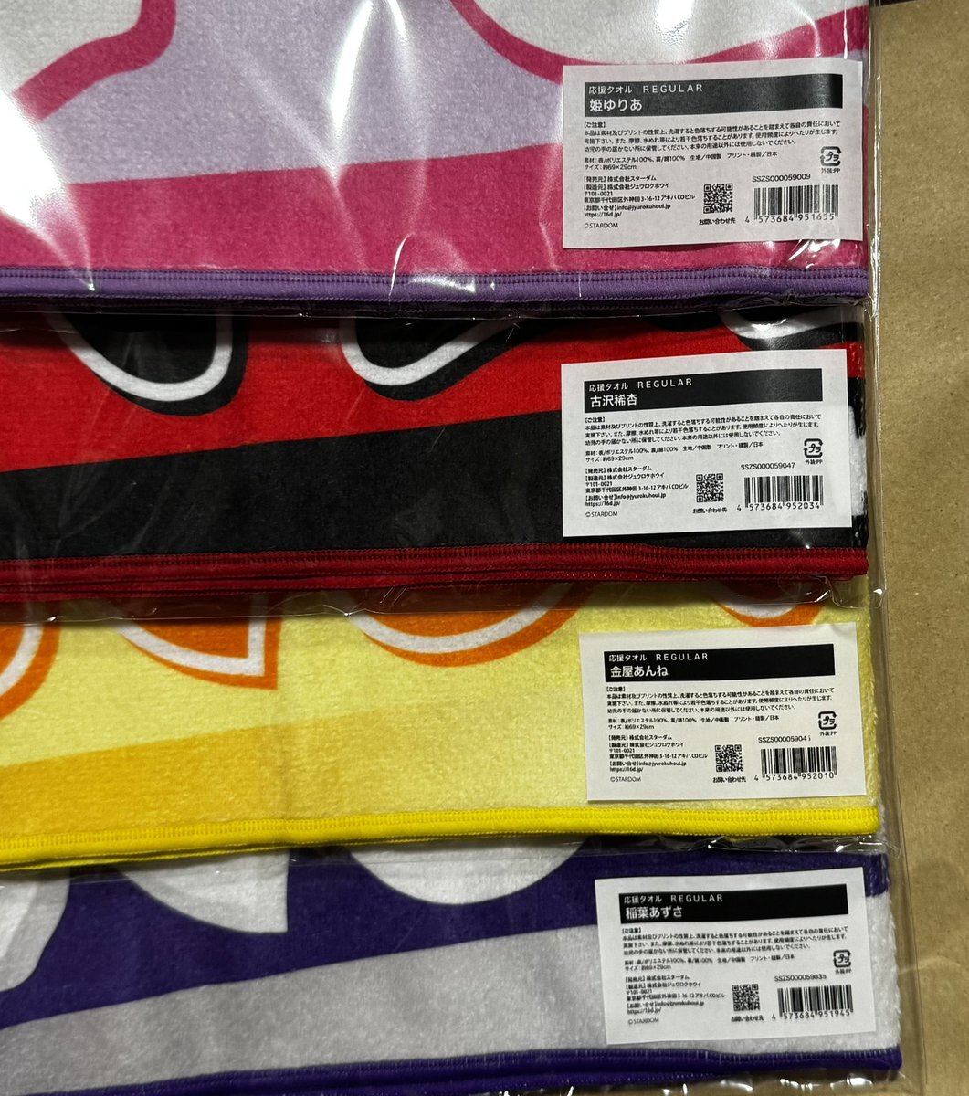 応援タオル来たー!😆 コレで応援頑張るぞ!👍 #STARDOM #姫ゆりあ 選手 #古沢稀杏 選手 #金屋あんね 選手 #稲葉あずさ 選手 pic.x.com/4E0KLBH7eD