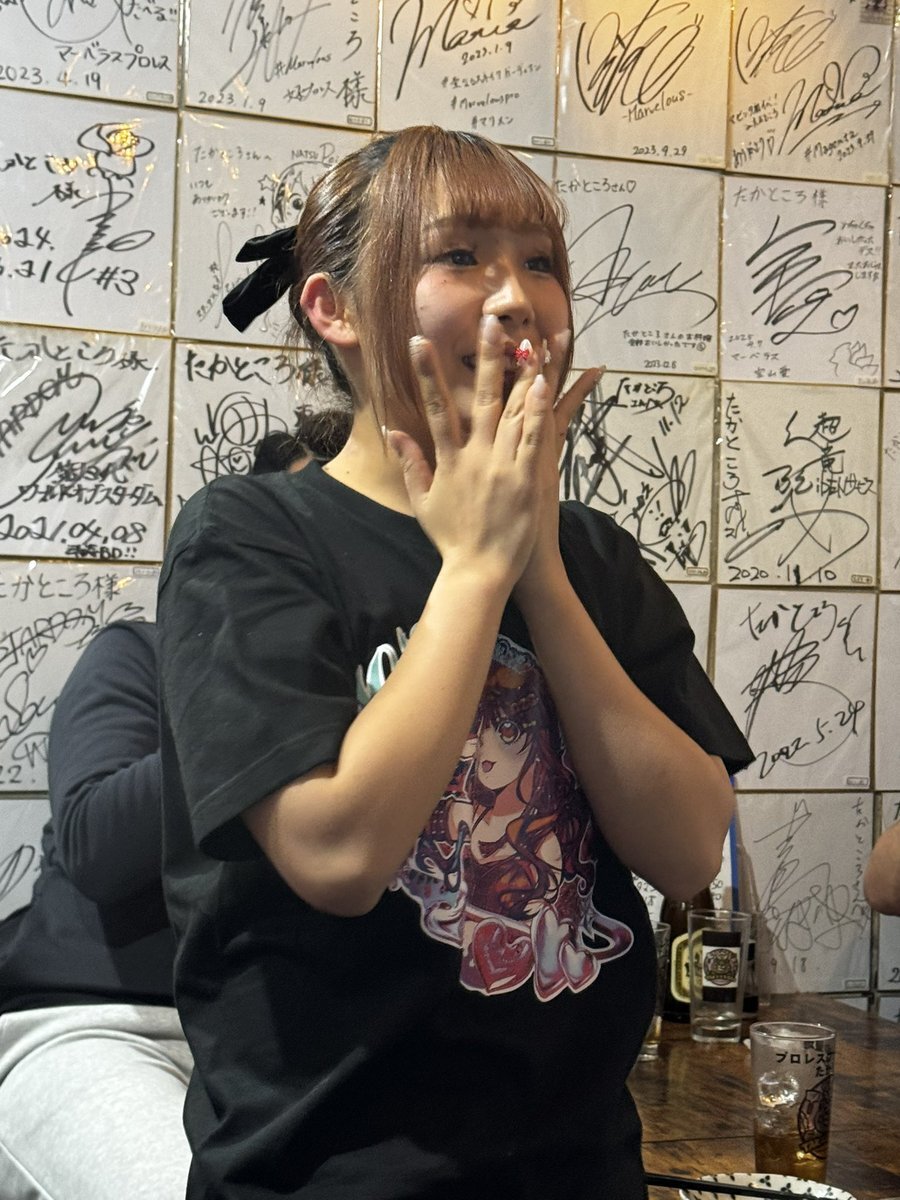 11.21 稲葉あずさ選手イベントinたかところ リング上とはまた違った一面を知れるのがイベントの良さ! サーモンなめろうを持ったあずさ選手を撮れるのはたかところだけ! 11.29自主興行楽しみにしてます😊 #たかところ #稲葉あずさ 選手 #pw_jto pic.x.com/U011OVjega