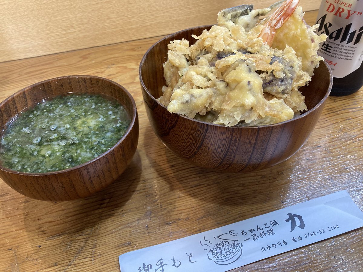 これで小さいサイズの天丼なのはびっくりしたっけ (てんぷらの量は変わらず、お米が少なめなのだそう 😋 #能登ウマイヨ #のと活 #穴水 pic.x.com/tLHPcrp7et x.com/atariland_maco…