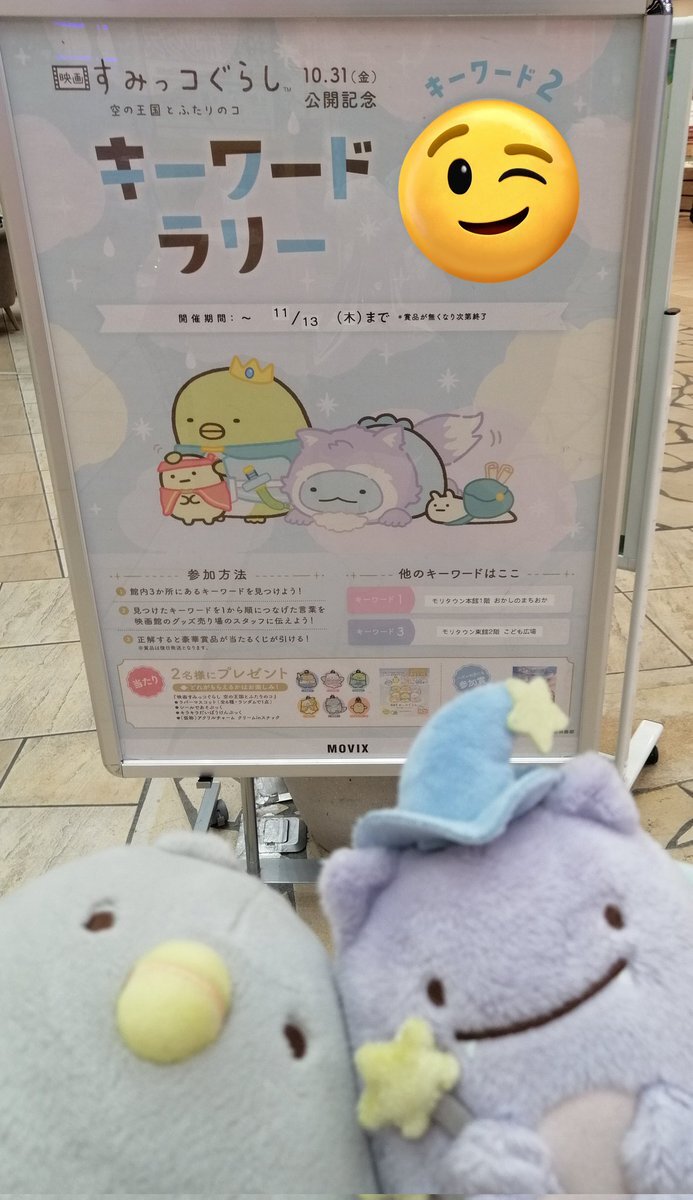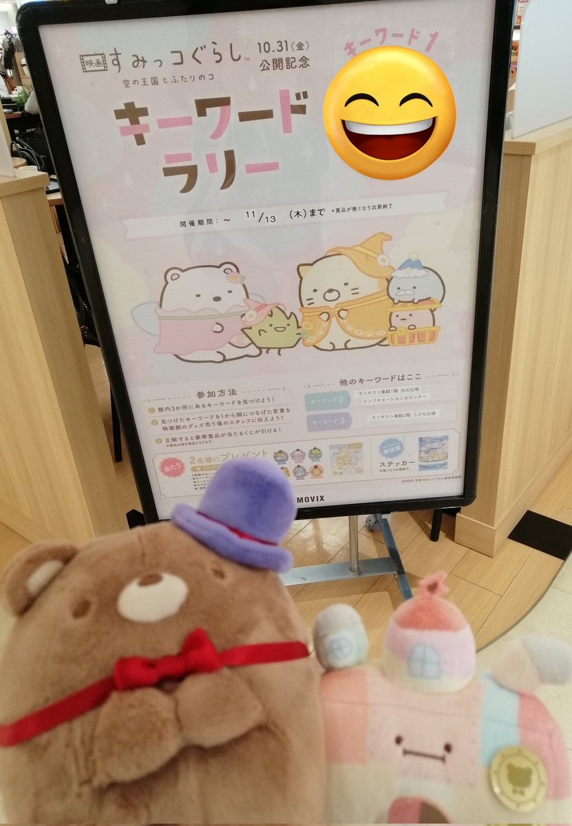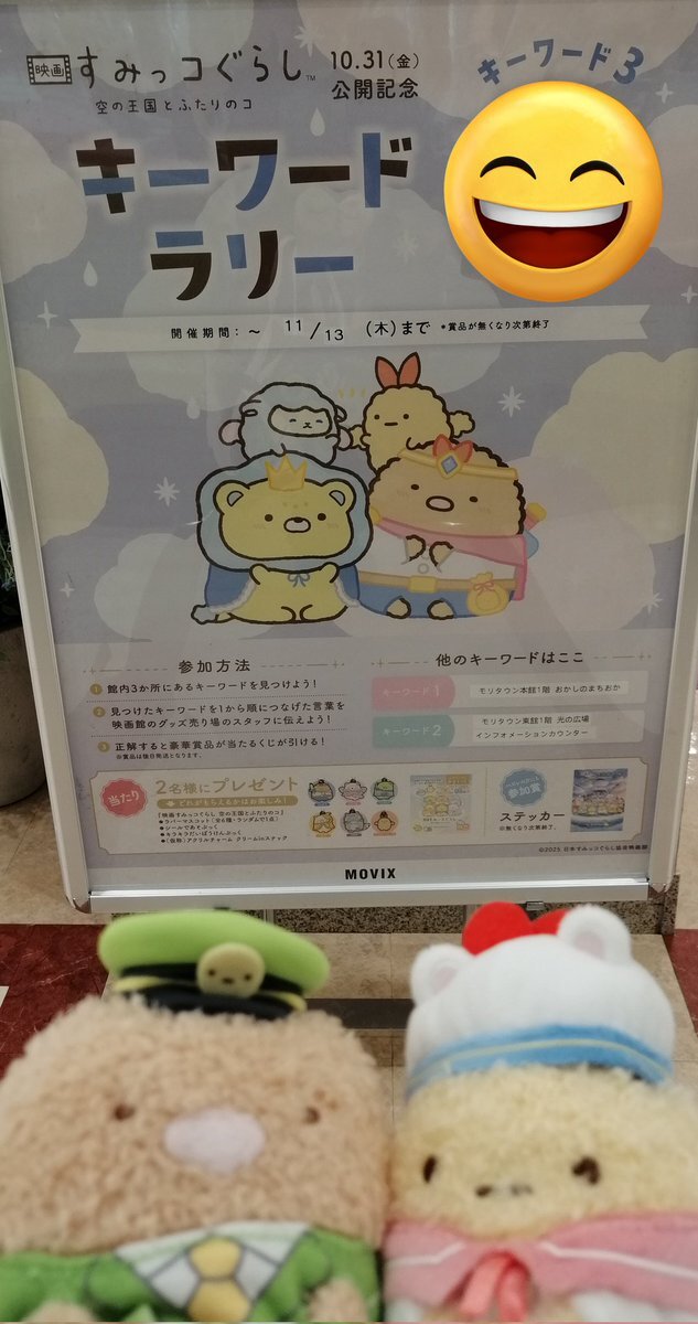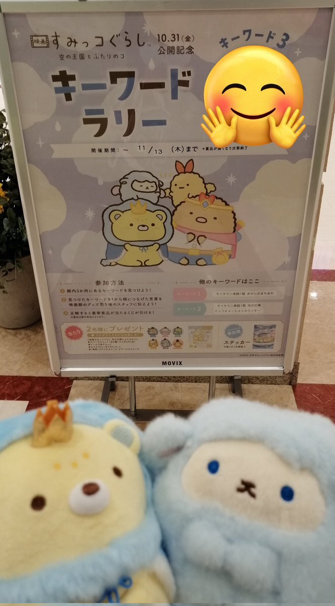 隣接のモリタウンで キーワードラリーを開催👀✨ 出勤ギリギリになるけれど… 何とか『廻り』きりました💦 特製ステッカーを頂き😆 此れも良き思い出😆 映画の余韻に浸る間もなく 職場へ激走🚗✨ ぬいの皆は車で御留守番💤 #すみっコぐらし #空の王国とふたりのコ #映画すみっコぐらしおひろめ隊 pic.x.com/tItQZ6vni3