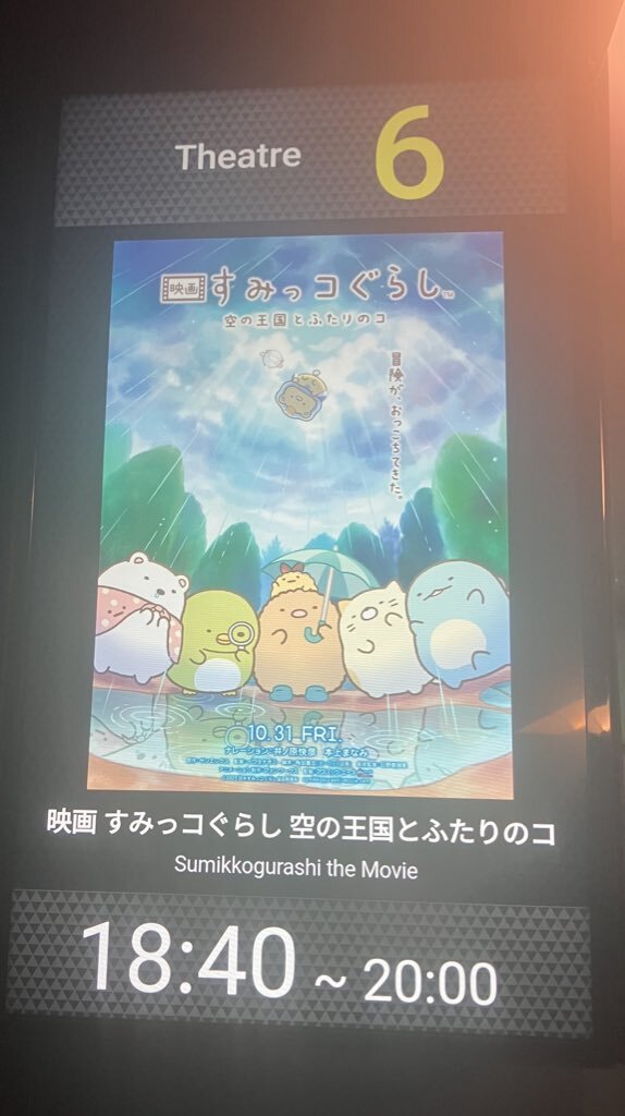 映画 #すみっコぐらし #空の王国とふたりのコ 昨日、娘と一緒にニャンコを火葬したあとに映画館に。 映画館は私と娘、そして一人で観にこられたオッサンの三人のみ! なんかもうオッさんかわいすぎやろ。