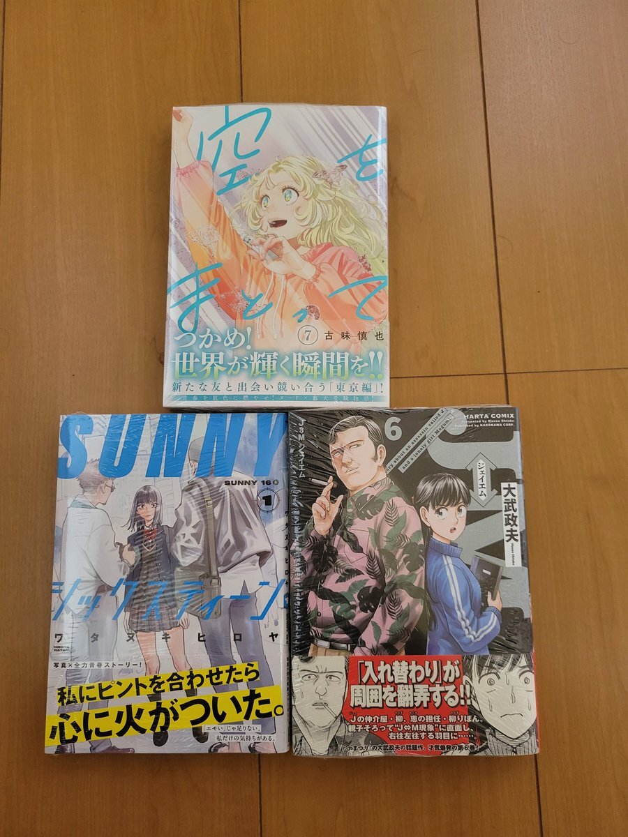 ~最近の購入漫画~ #空をまとって 7巻 主人公がヌードで藝大合格を目指してる漫画。7巻まで続いても毎回楽しい✨ ジェイエム6巻 【ヒナまつり】って他作の作者さん新作。 汚い 君の名は。って感じ(笑) 今月1巻発売 表紙、Xでのちょい読みから購入 【SUNNYシックスティーン】 カメラ、写真の漫画📸 pic.x.com/OmKNzQ8izw