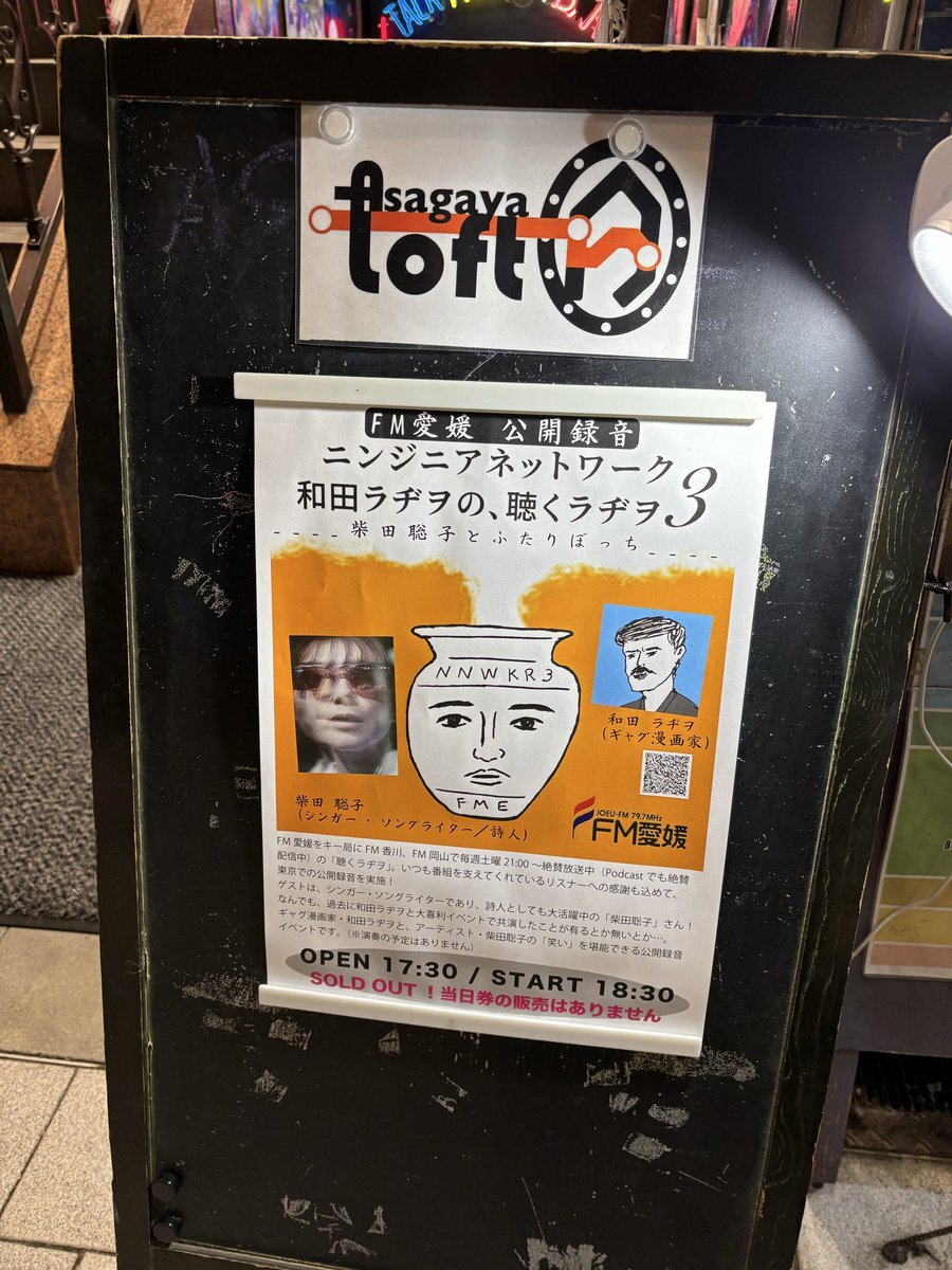 麻布台から阿佐ヶ谷へ 浜ちゃんの個展最高😃 和田ラヂヲさんと柴田聡子さんのお話も最高😃ゆうとスマイルも最高😆 #空を横切る飛行機雲 #浜田雅功展 #阿佐ヶ谷ロフトA #和田ラヂヲ #柴田聡子 pic.x.com/vjRsQQz6HM