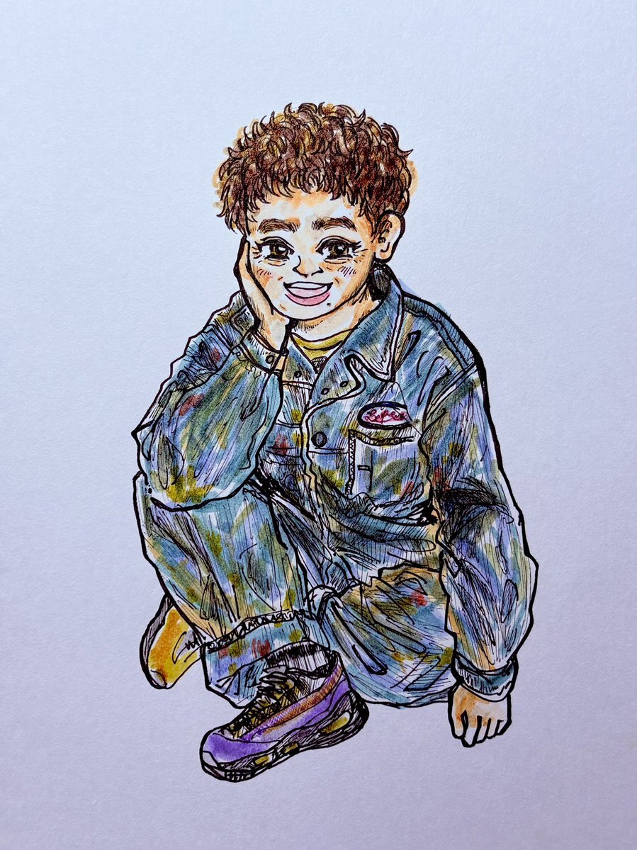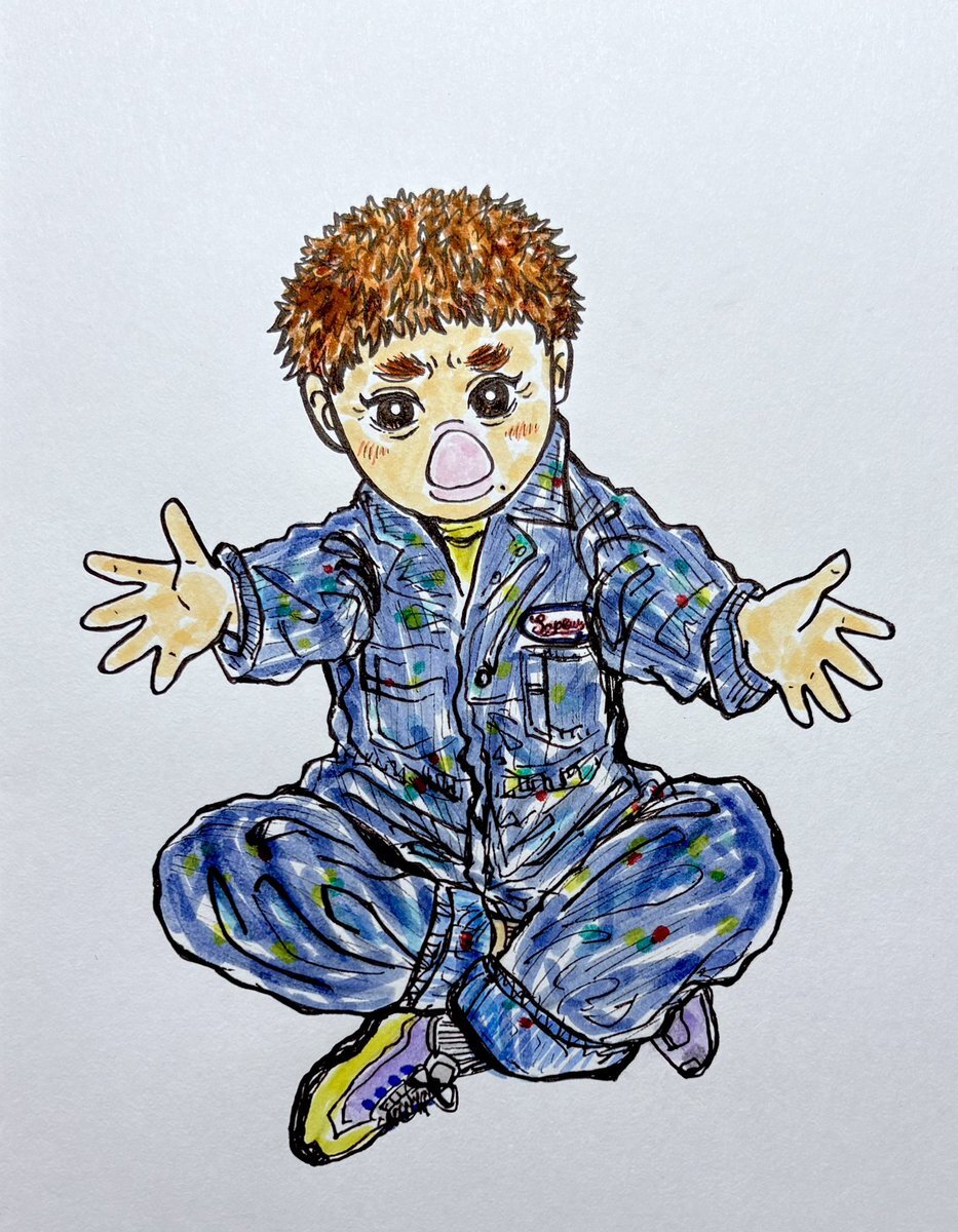 個展のツナギ浜ちゃん(•ө•) 目を大きくしすぎた > <ก՞ ՞ あまり似てないって言われたけど せっかく描いたので➰ #空を横切る飛行機雲 #かわいい浜ちゃん pic.x.com/dkZl5PSNcm