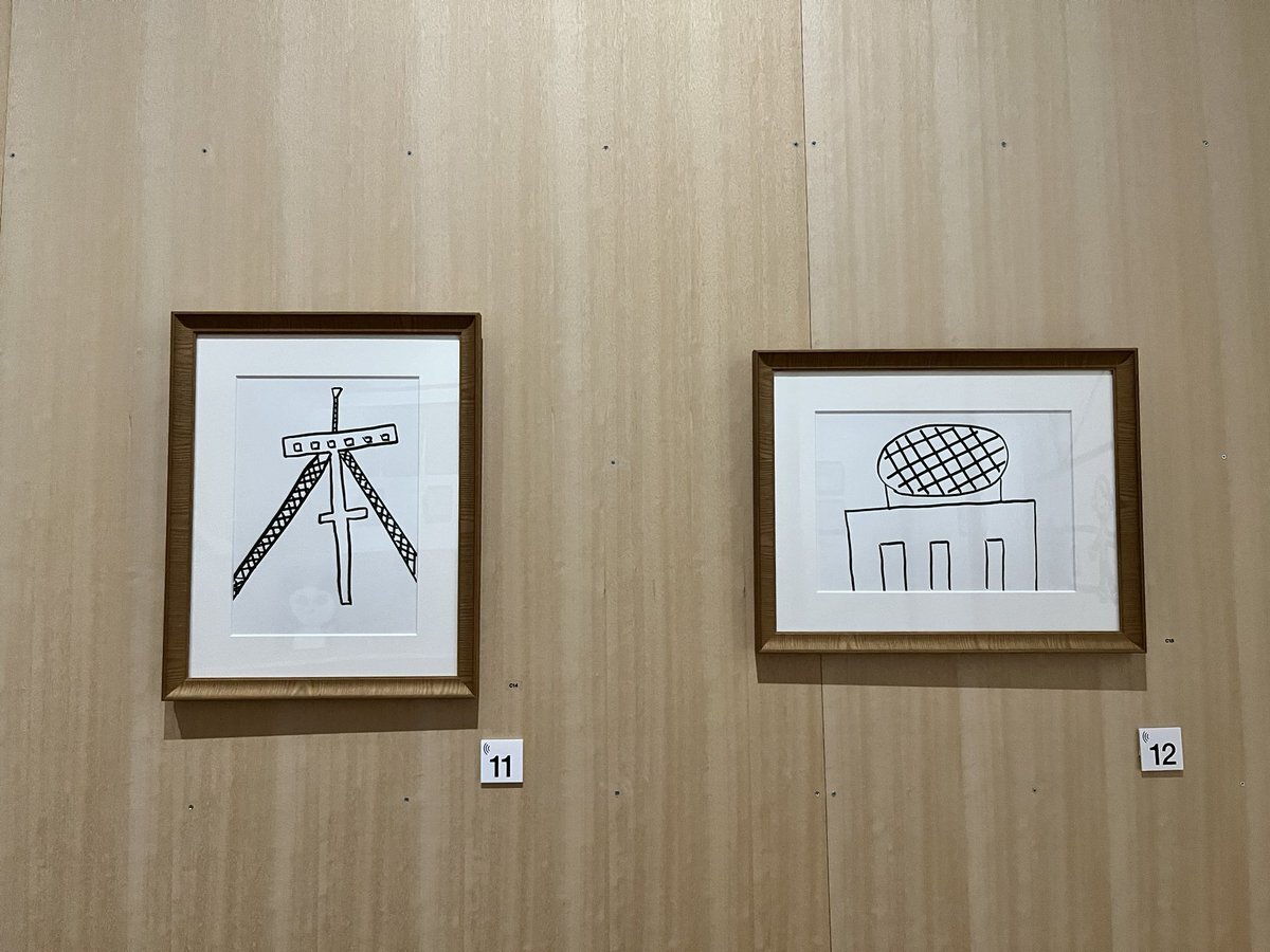 展示されているイラストが秀逸過ぎて笑いが止まらなかったwwwww #浜田雅功展 #空を横切る飛行雲 pic.x.com/PZnJmqO8kJ