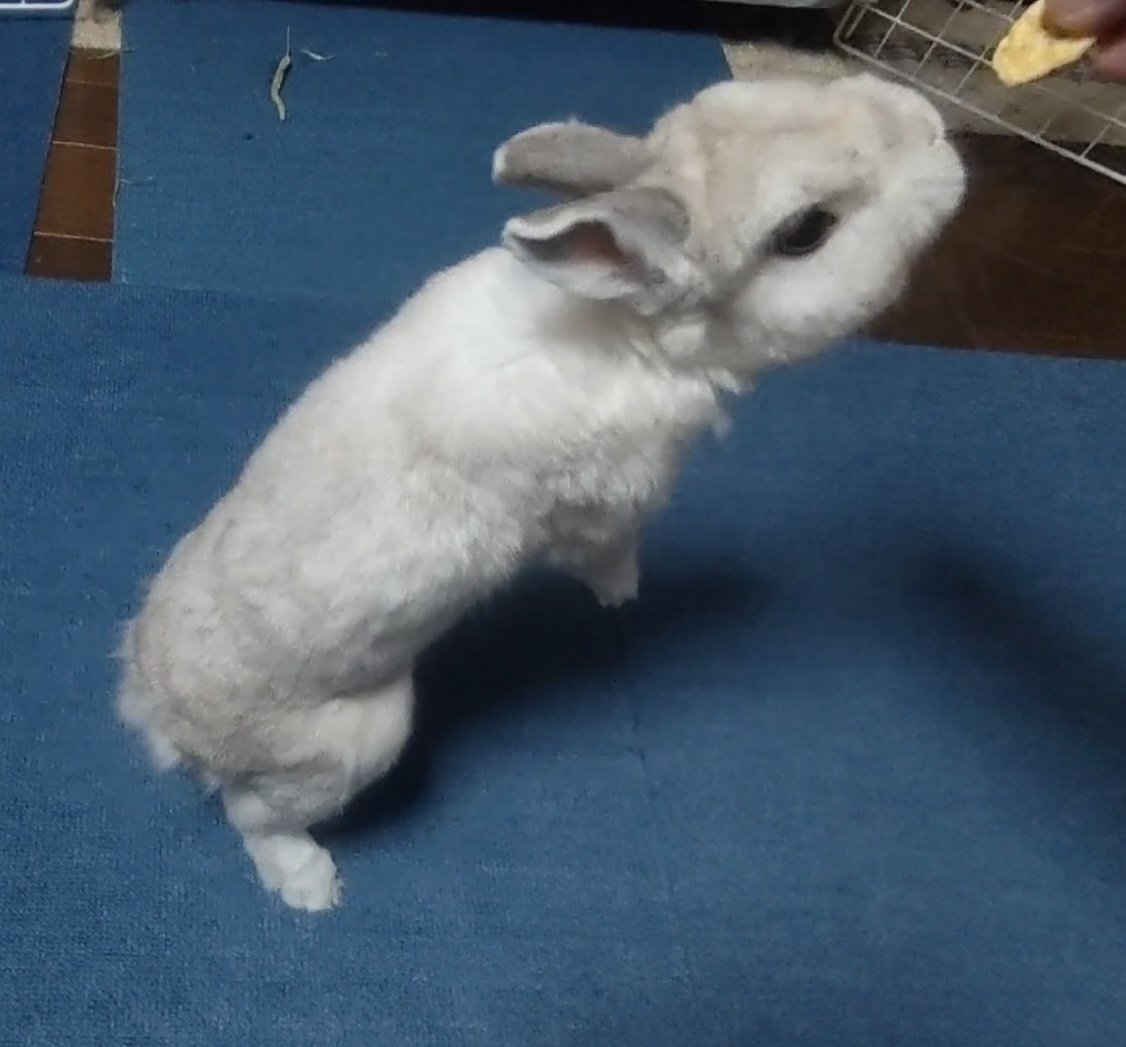 昨日、立ち耳うさぎの日に2足で立ち上がり歩くミミちゃん🐰 #ネザーランドドワーフ #立ち耳うさぎの日 #二足歩行 #フリーズドライバナナ #ミミちゃん #高齢うさぎ #うさぎと暮らす #うさぎといる生活 pic.x.com/vboifVHd8i