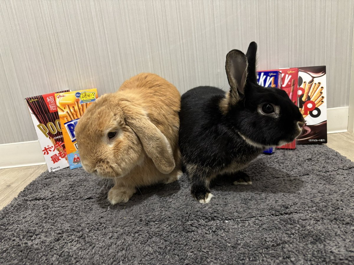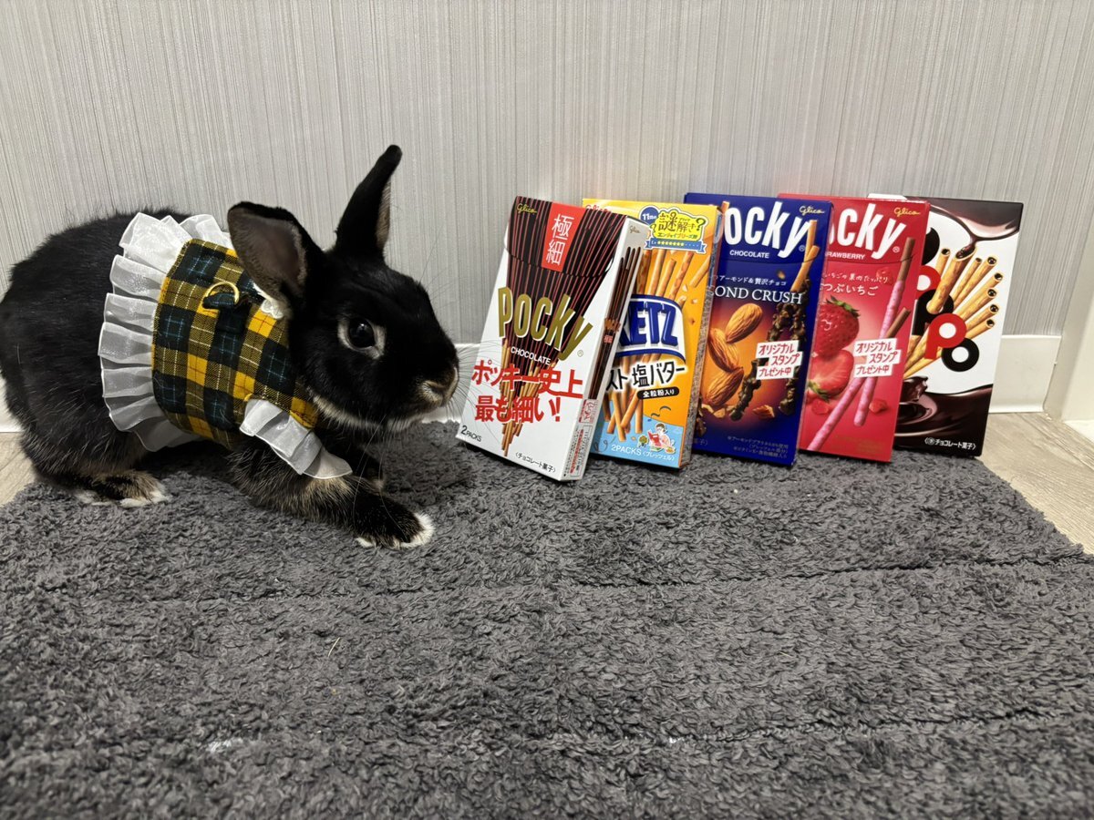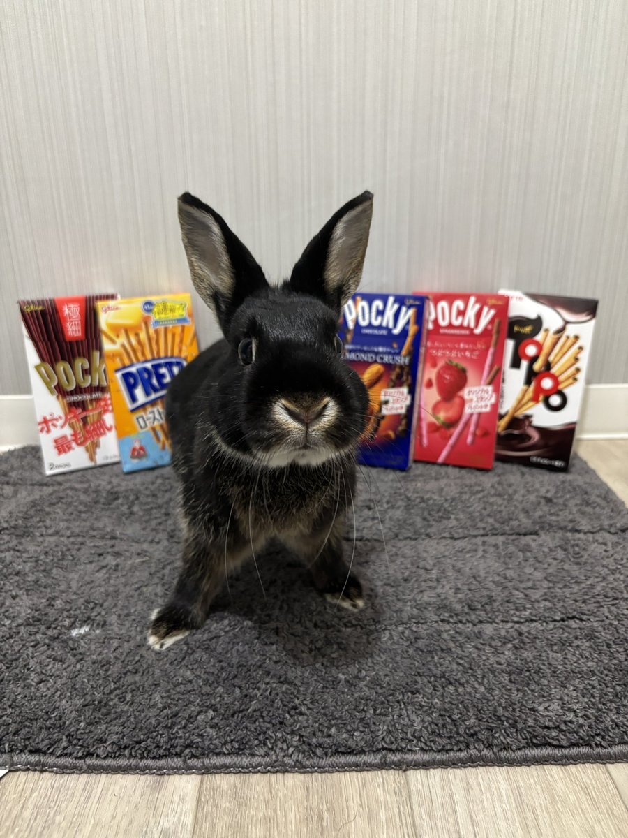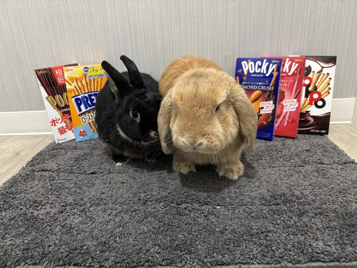 立ち耳の日とポッキーの日でコラボしました🐰 途中から我が家の長男坊投入してみた☀️ 5箱買ったのでこの一週間のおやつが確定しました #ポッキーの日 #立ち耳の日 #立ち耳うさぎの日 #ネザーランドドワーフ #ホーランドロップイヤー pic.x.com/q3KXMnJ2i3