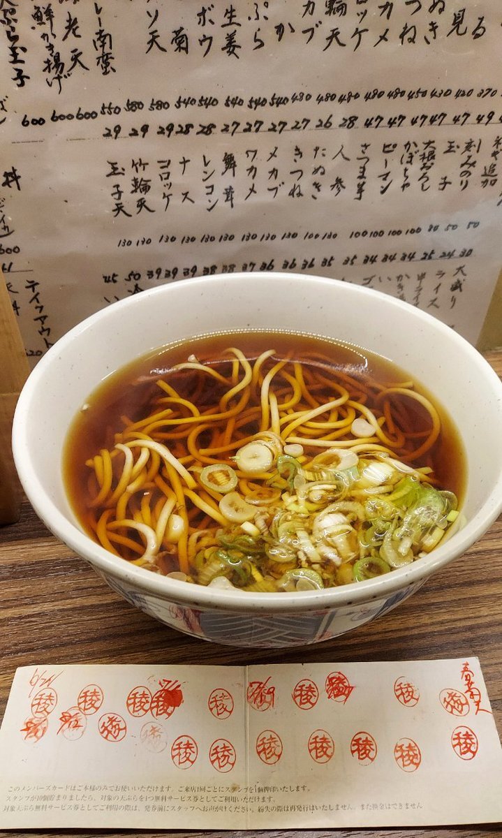 #立ち食い蕎麦酒処稜 #かけそば(麺半分) 浅草ロック座の帰りに綾瀬の稜さんへ🚃 16:30到着でいつもの大好きなお姉さんがお一人で頑張ってらっしゃいました💪 熱々の一杯と笑顔をありがとうございます🥰 夜からの仕事頑張れます👍 そしてスタンプカードいっぱいになりました! #立ち食いそば pic.x.com/V0rN2QR1RG
