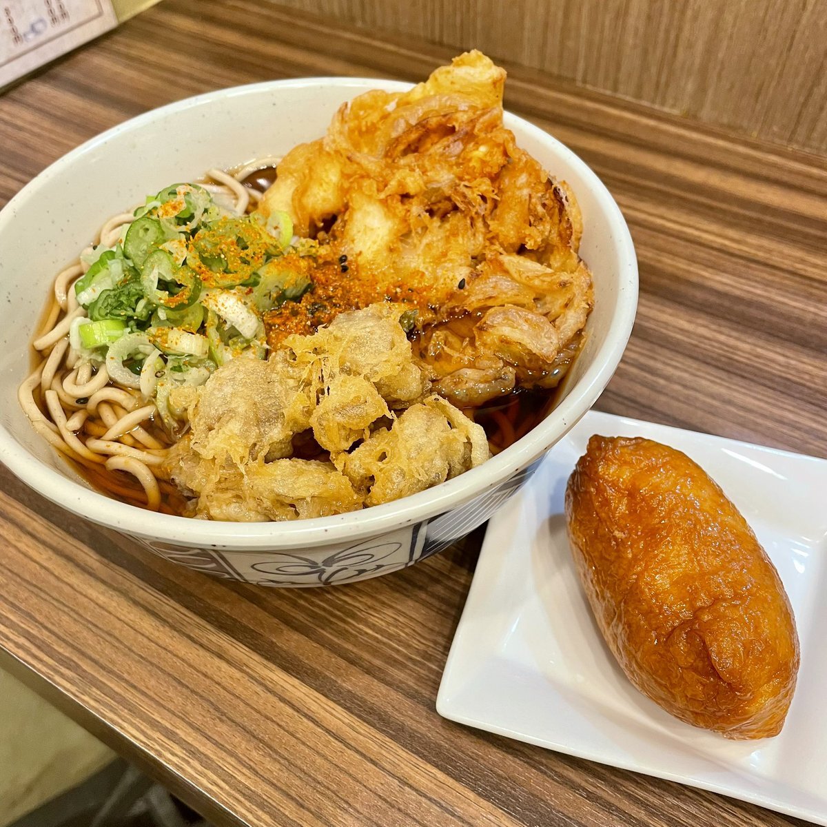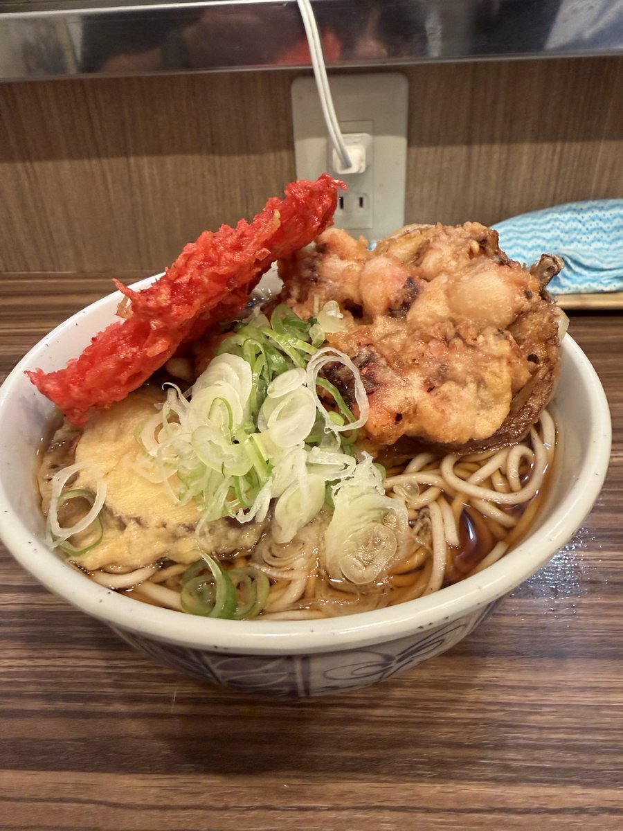 今日の一杯 海鮮かき揚げ天そば 舞茸天 おいなりさん 笑顔がステキな👩🏻‍🍳👩🏻‍🍳お二人から 元気もいただきました お心遣いに感謝🙏🏻 ごちそうさまでした🙇🏻‍♂️ #綾瀬駅東口 #立ち食い蕎麦酒処稜 pic.x.com/FSVUJWFSuD