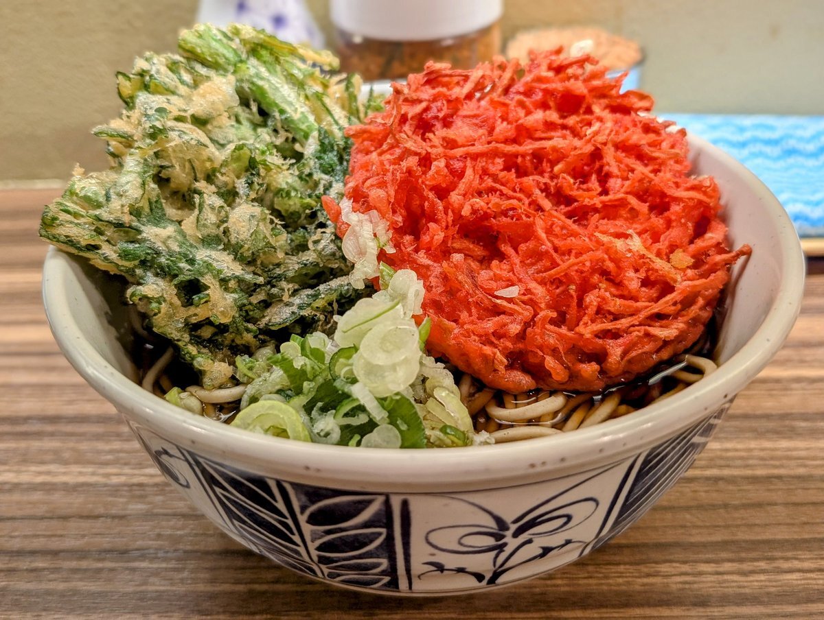 今朝は #立ち食い蕎麦酒処稜 さんにて 紅生姜天そばに春菊天を追加 天ぷらはサクサク、紅生姜の塩味、春菊のほろ苦、返しの効いたおつゆ、のどごしが良いお蕎麦 何度も通いたい美味さ ごちそうさまでした #立ち食いそば #路麺 #足立区 #綾瀬 pic.x.com/WmYXAFz01q