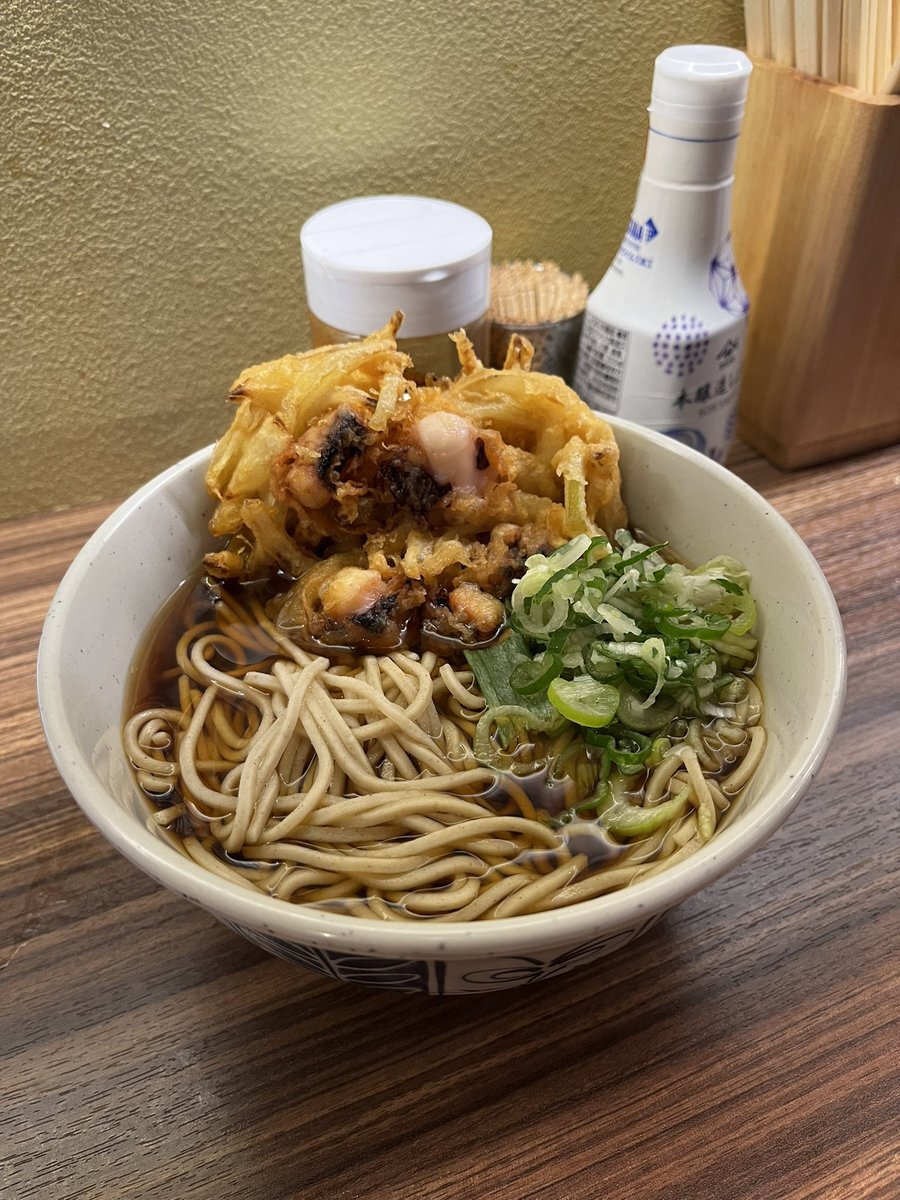 もちろんそばも堪能 ゲソ天そばのゲソがプリップリで柔らかく 美味すぎた👏👏👏 #立ち食い蕎麦酒処稜  #路麺 #立ち飲み pic.x.com/K9sSXPo9Zs