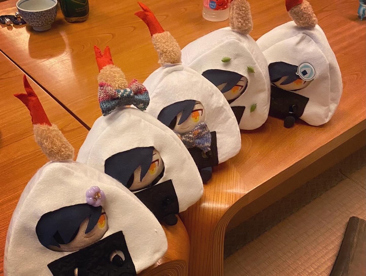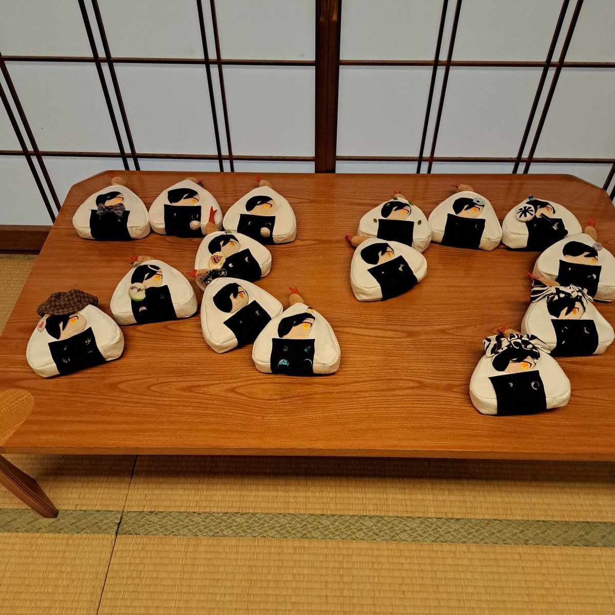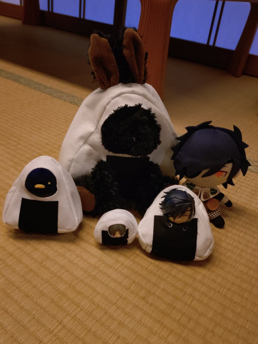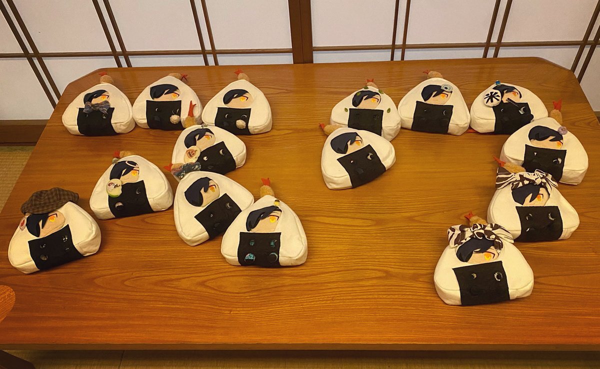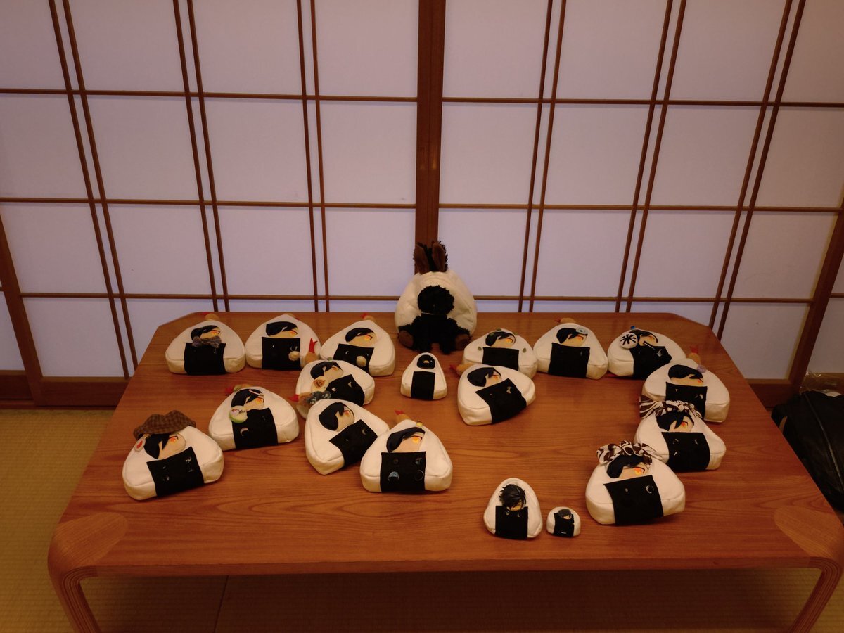 どうしたすわ、そんな顔して✨ みんなでおにぎりになりたいすわ✨ 白米会に、いぬしろさん@hmhmsikが皆のぶんのおにぎりスーツ(仮)作ってきてくださって、とってもおにぎりでした🍙おにぎりのスワ文字、壮観! #立体燭秋の白米会 pic.x.com/BBz5us5kjI