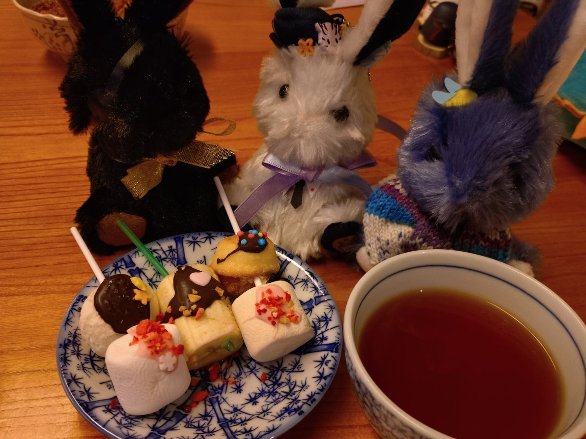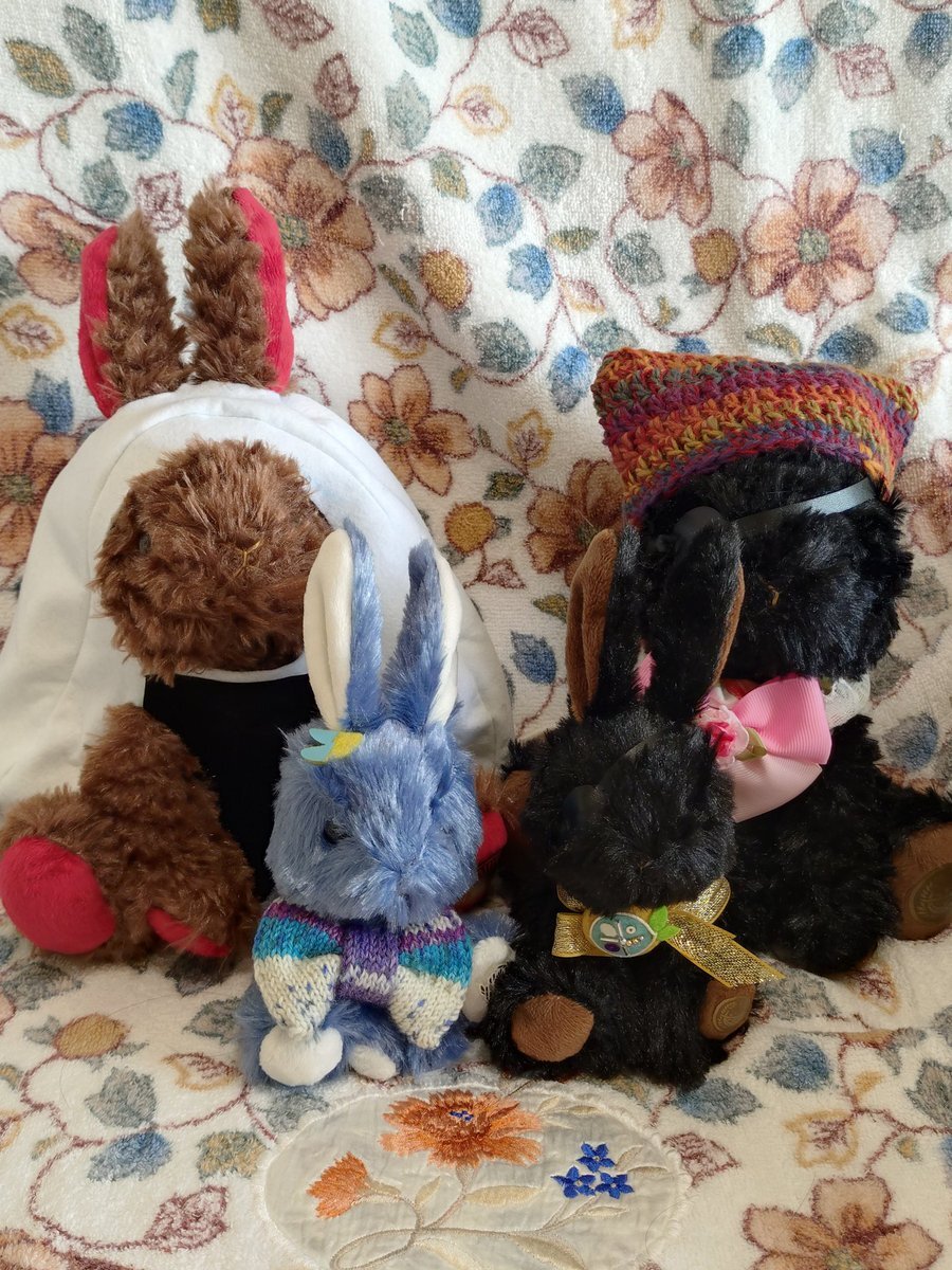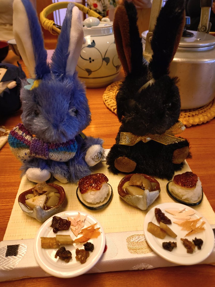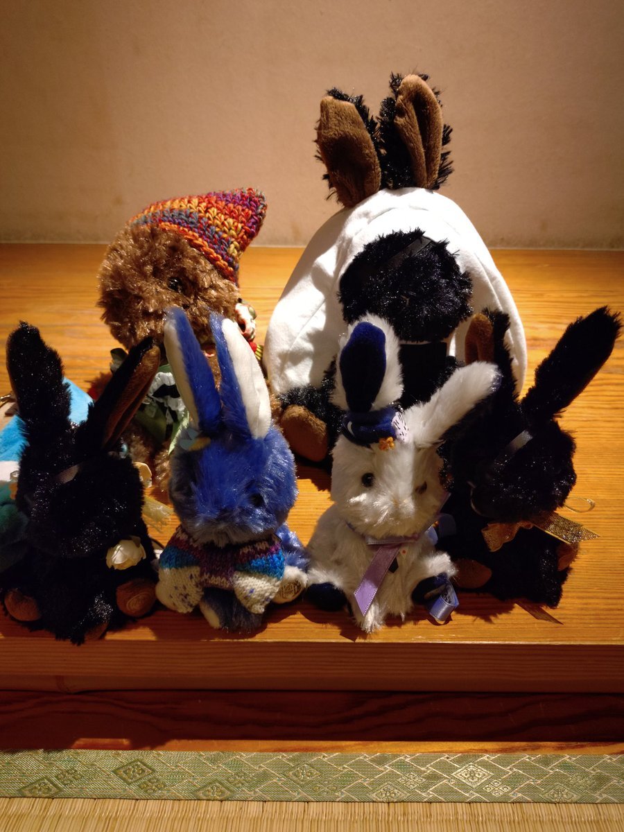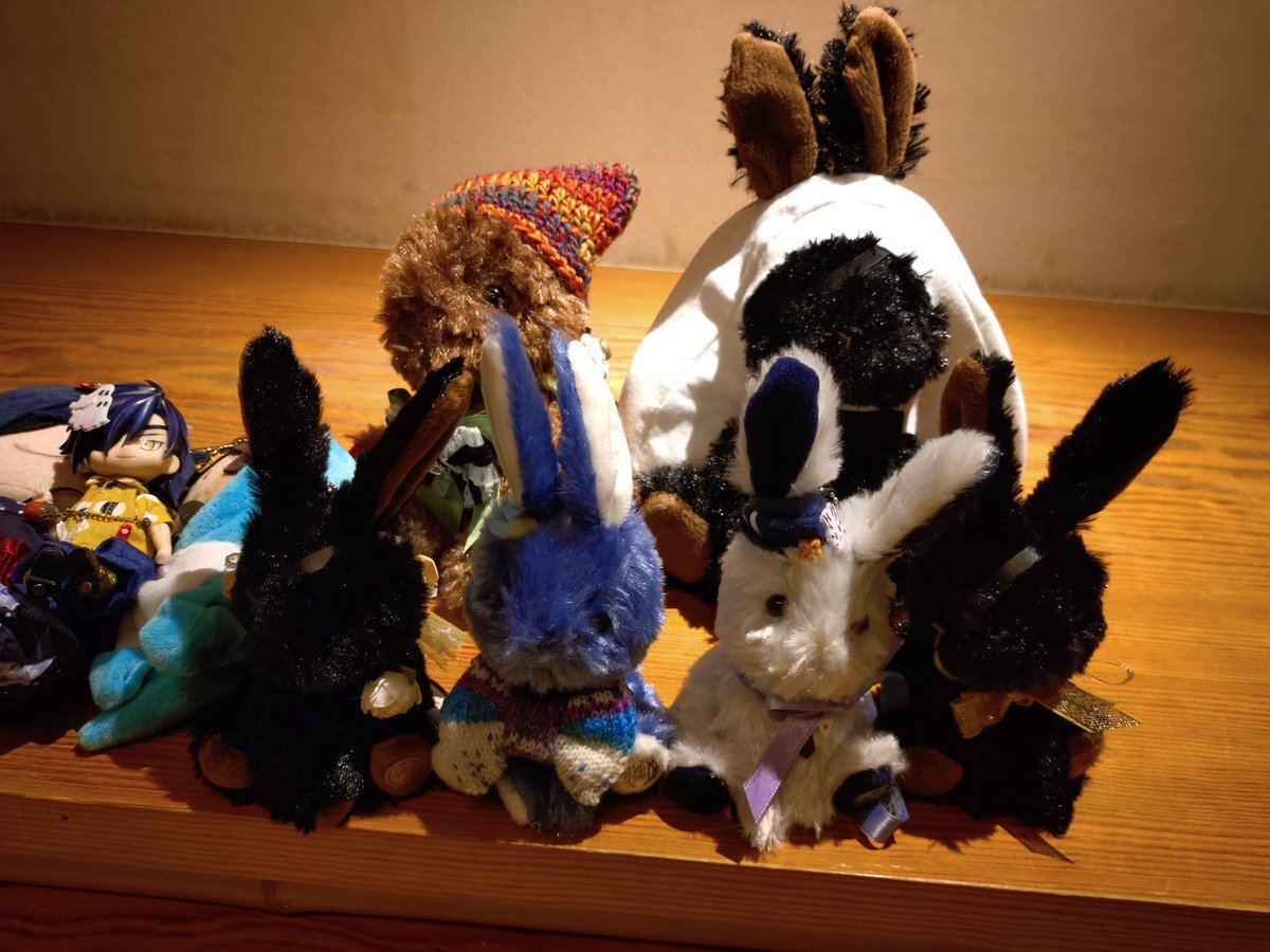 昼沖さん@hige_humのミニラビ忠さんもご一緒にラビコレ写真撮影🐰 実は1回うちのこと間違えて、昼沖さんのミニラビ忠さんを誘拐しそうになりました(;´∀`)反省 #立体燭秋の白米会 pic.x.com/yCs663sEb0