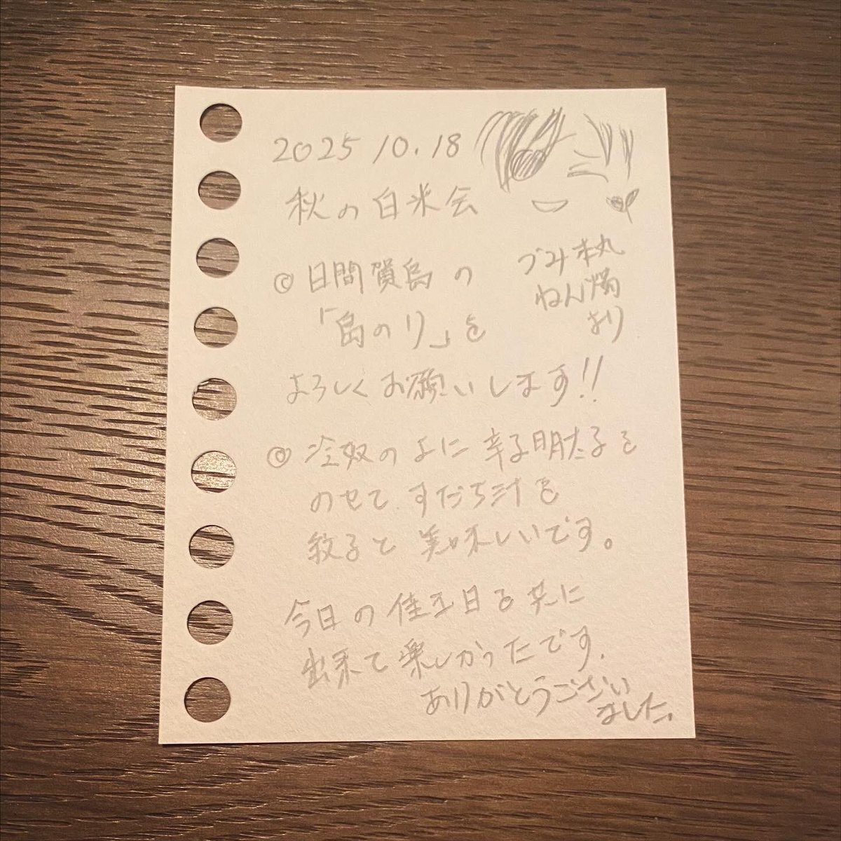 白米会初参加でした。日帰りでドアtoドアでほとんど室内だったので、本当に行ったの?と、不思議な気持ちで一杯です。あれだけ人がいるのに、好きなことに自由でおいちあで、とっても楽しかったです✨ また参加したいなぁ! #立体燭秋の白米会 pic.x.com/sUaUKh7oC2