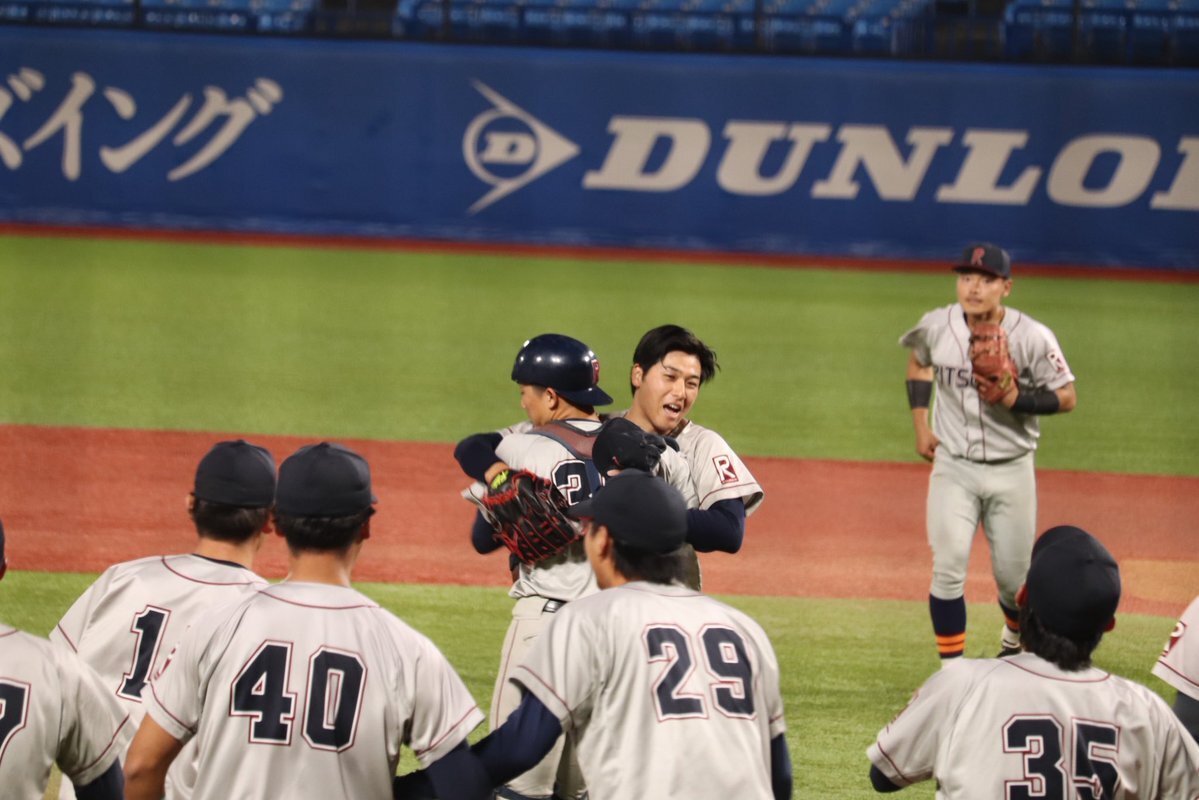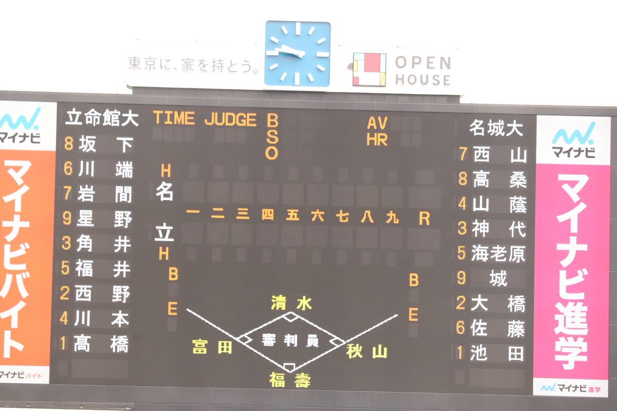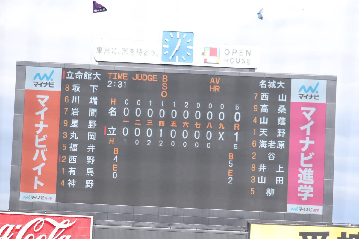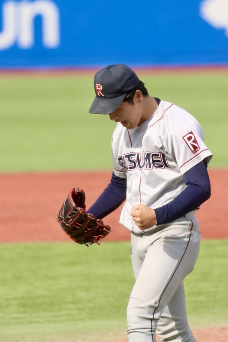 【試合結果】 0-1で勝利! 途中登板の#有馬伽久(3・#愛工大名電)が締め、試合終了。 皆様ご声援ありがとうございました!! #恩返し #立命館大学硬式野球部 pic.x.com/pnohHop601