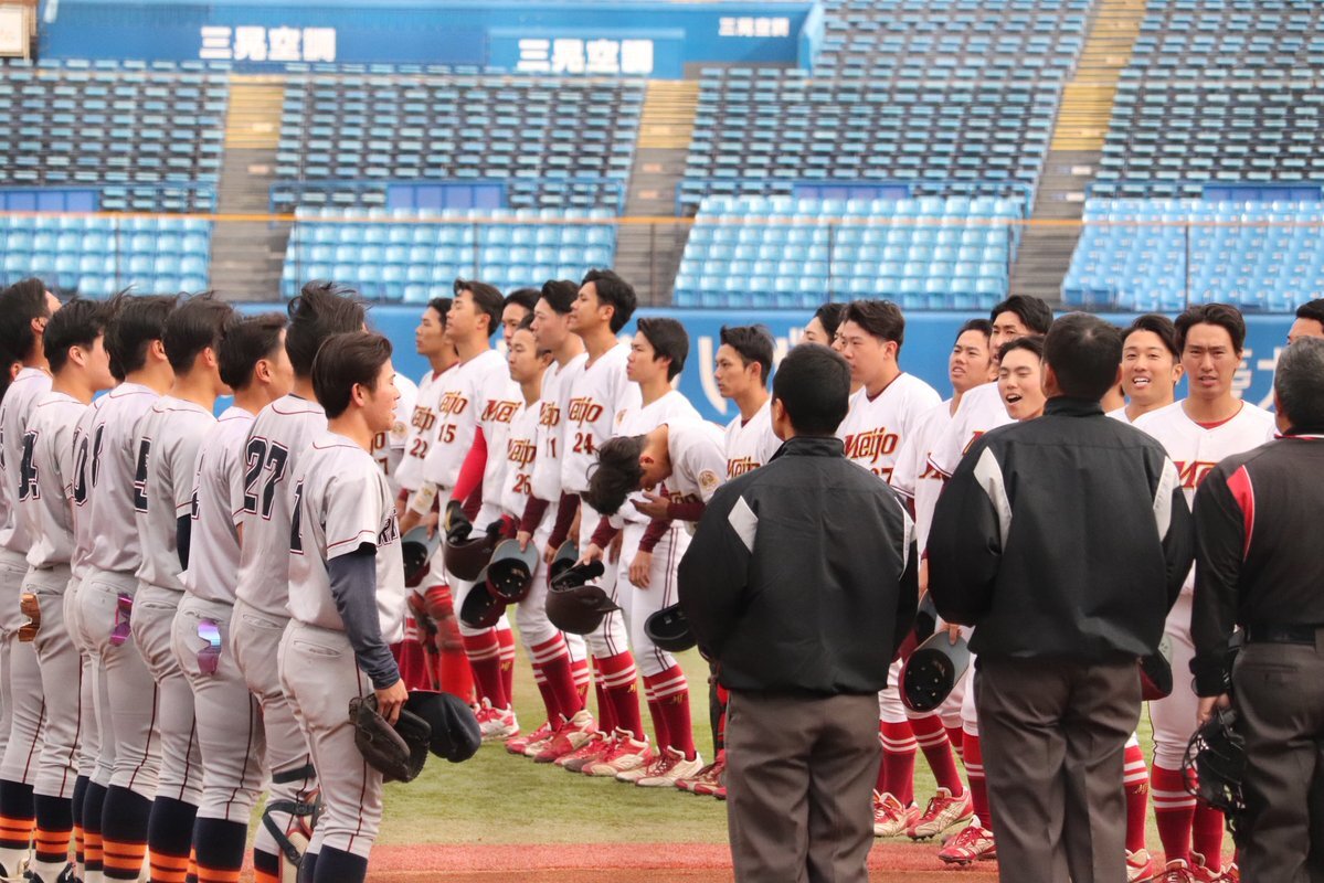 【明治神宮野球大会 大学の部】 試合終了 名城大0-1立命館大 立命館が決勝進出💥 最終回1死2塁のピンチで #有馬伽久(#愛工大名電)が登板し、ゼロ締め👏 #明治神宮野球大会 #高校野球 #甲子園 #大学野球 #立命館大学 #立命館大学硬式野球部 #名城大学 #名城大学硬式野球部 pic.x.com/4djXje4aHe