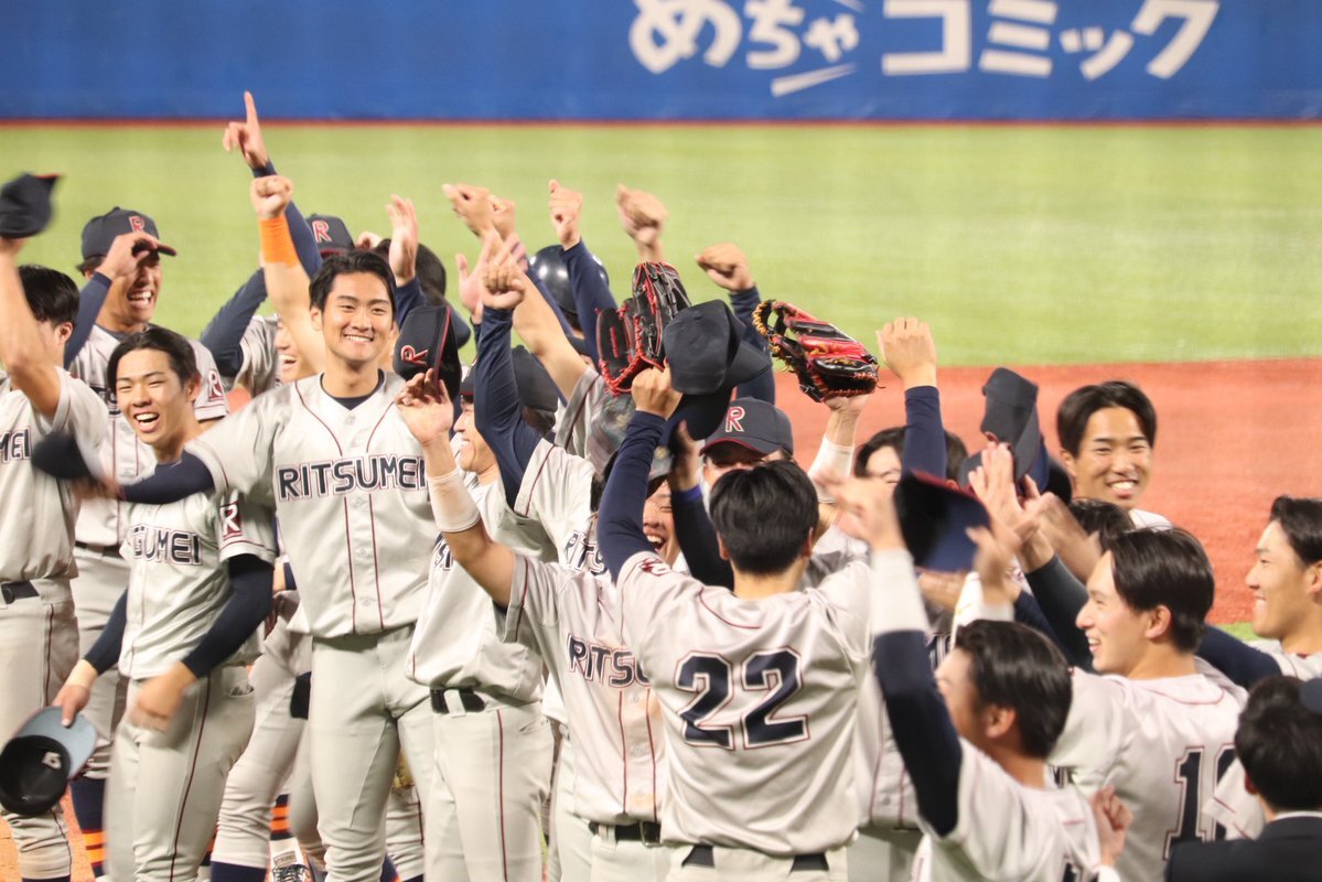 【第56回明治神宮野球大会】 本日の試合をもちまして、秋の全試合日程が終了しました🔥 感じたことのない感動を何度も味わうことができました。 それは、皆様のご声援があったからこそです。 また、球場にお越しください! そしてご声援よろしくお願いいたします! #恩返し #立命館大学硬式野球部 pic.x.com/Q6jLfCB7iB
