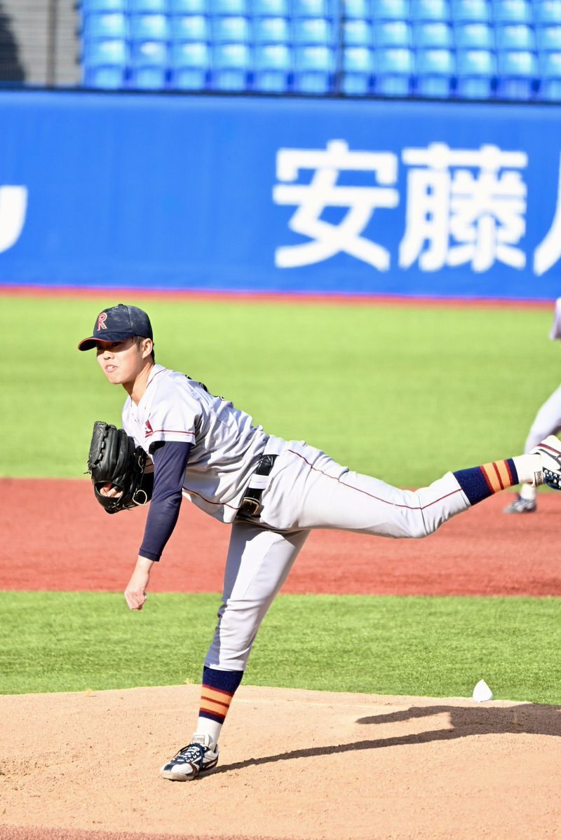 2025.11.19@神宮球場 2回33球被安打1奪三振1与四球3失点1 トーナメント全4試合登板本当にお疲れ様でした! #有馬伽久 #立命館大学硬式野球部 #第56回明治神宮野球場 pic.x.com/3BbLWNsmJF