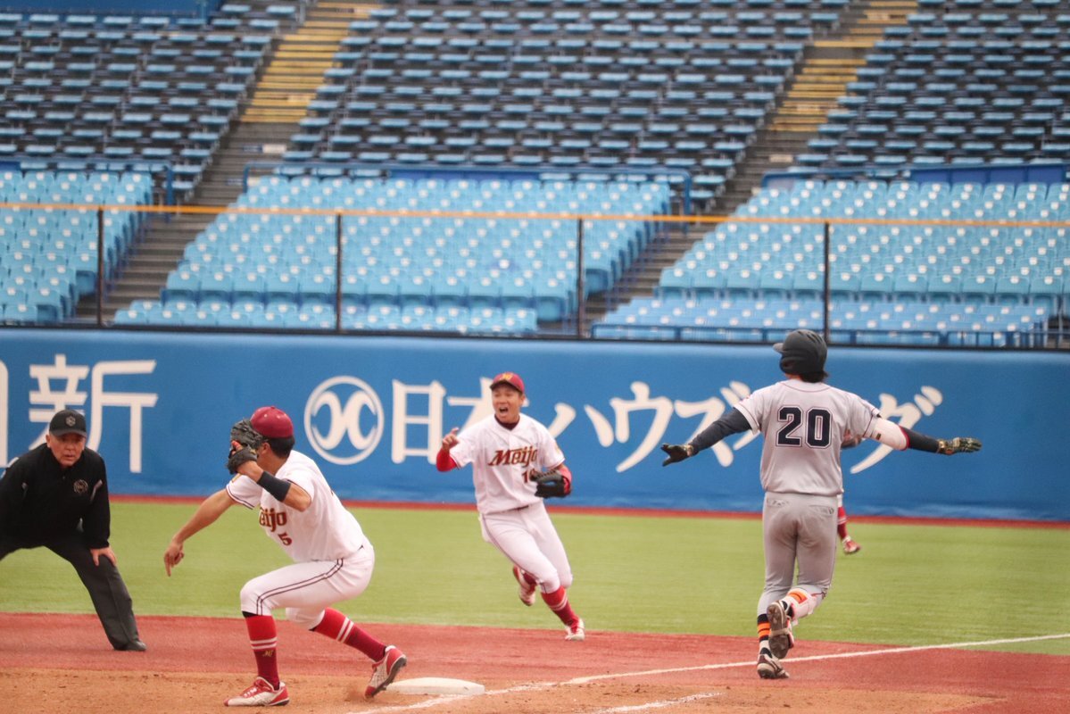 【明治神宮野球大会 大学の部】 4回終了 名城大0-1立命館大 高橋くん自らセーフティーバントで立命先制💥 #高橋大和 #社高校 #明治神宮野球大会 #高校野球 #甲子園 #大学野球 #立命館大学 #立命館大学硬式野球部 #名城大学 #名城大学硬式野球部 pic.x.com/K0i2PA8GZR