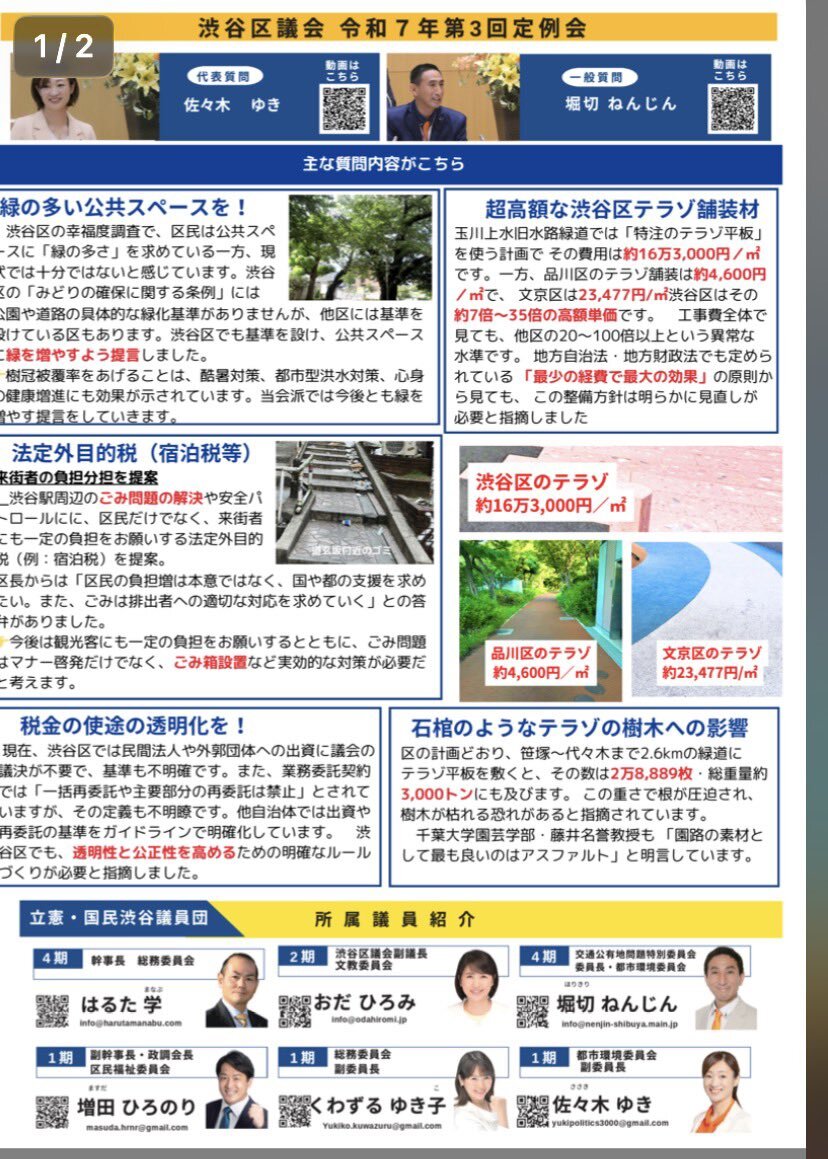 渋谷区議会 令和7年6月17日 074 日程第31 笹塚・大山緑道(工事その①)の工事評価および今後の工事への反映を求める請願 賛成討論 佐々木由樹 議員(立憲・国民)#shorts youtube.com/shorts/adn1Ynf… #渋谷区議会 #佐々木由樹 #立憲・国民 #立憲・国民渋谷議員団 #賛成討論 #玉川上水旧水路緑道 #大山緑道 pic.x.com/4366jTxnsq x.com/Shibuya_no_Sor…