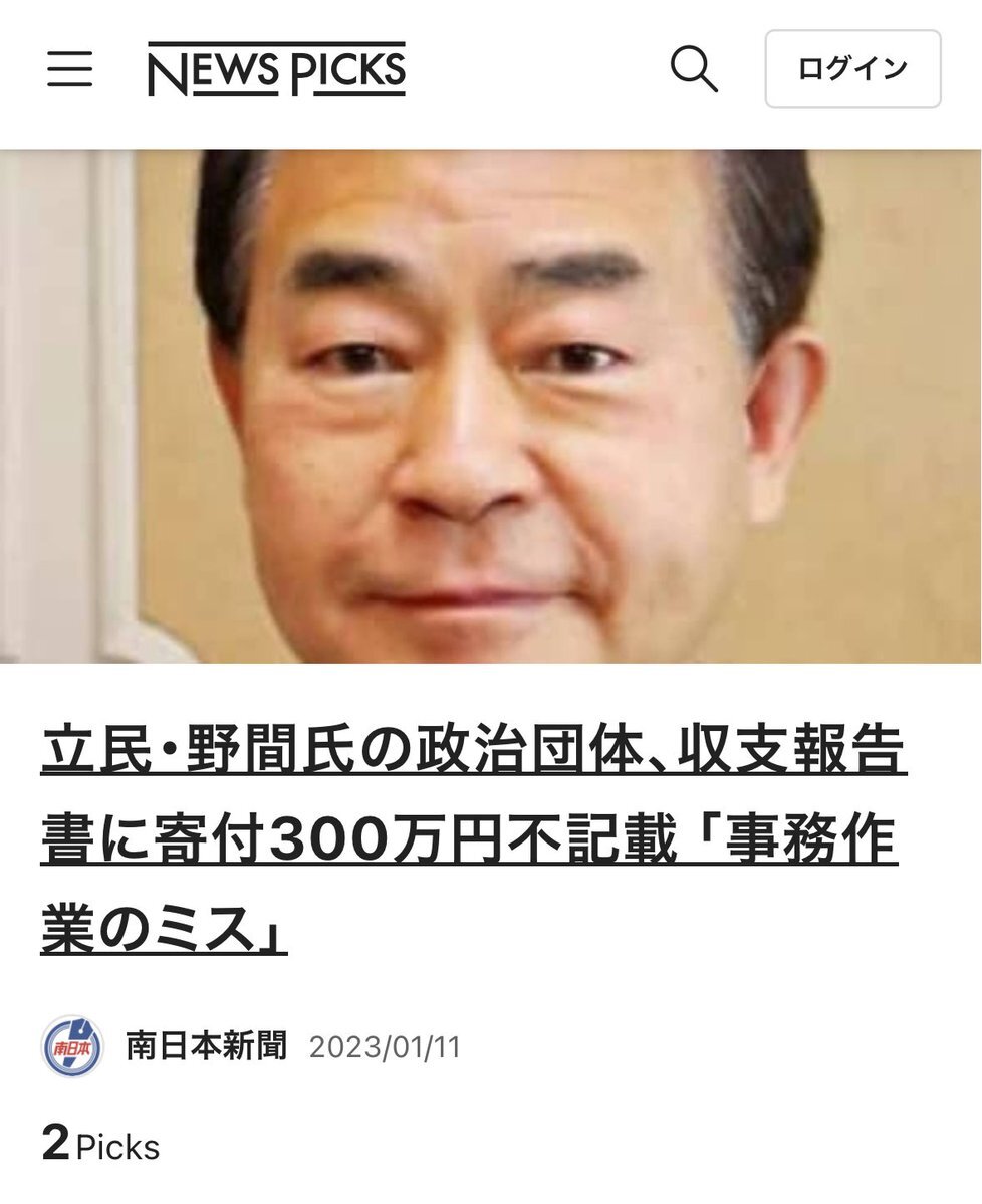 立憲野間議員、収支不記載を2度も報道されている! 安住幹事長も裏金、野間議員も裏金。 立憲は「政治とカネ」について説明責任があるのではありませんか? 公明党は是非とも立憲を追及して下さい。 烏合の衆にはならないでね。 #立憲に騙されるな