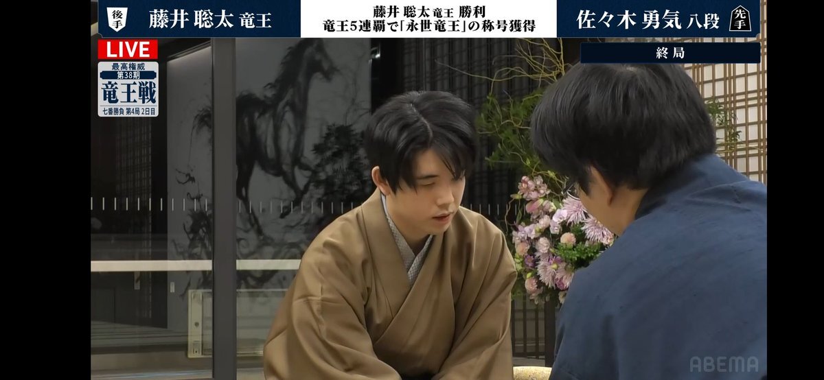 ということで、ぼーっと視聴中。 #竜王戦第4局 【竜王戦第4局・動く棋譜速報】藤井聡太竜王-佐々木勇気八段の京都競馬場対局2日目…武豊さんが再開を盤側で見守り、佐々木八段の封じ手は▲1五歩 : 読売新聞 yomiuri.co.jp/igoshougi/ryuo…