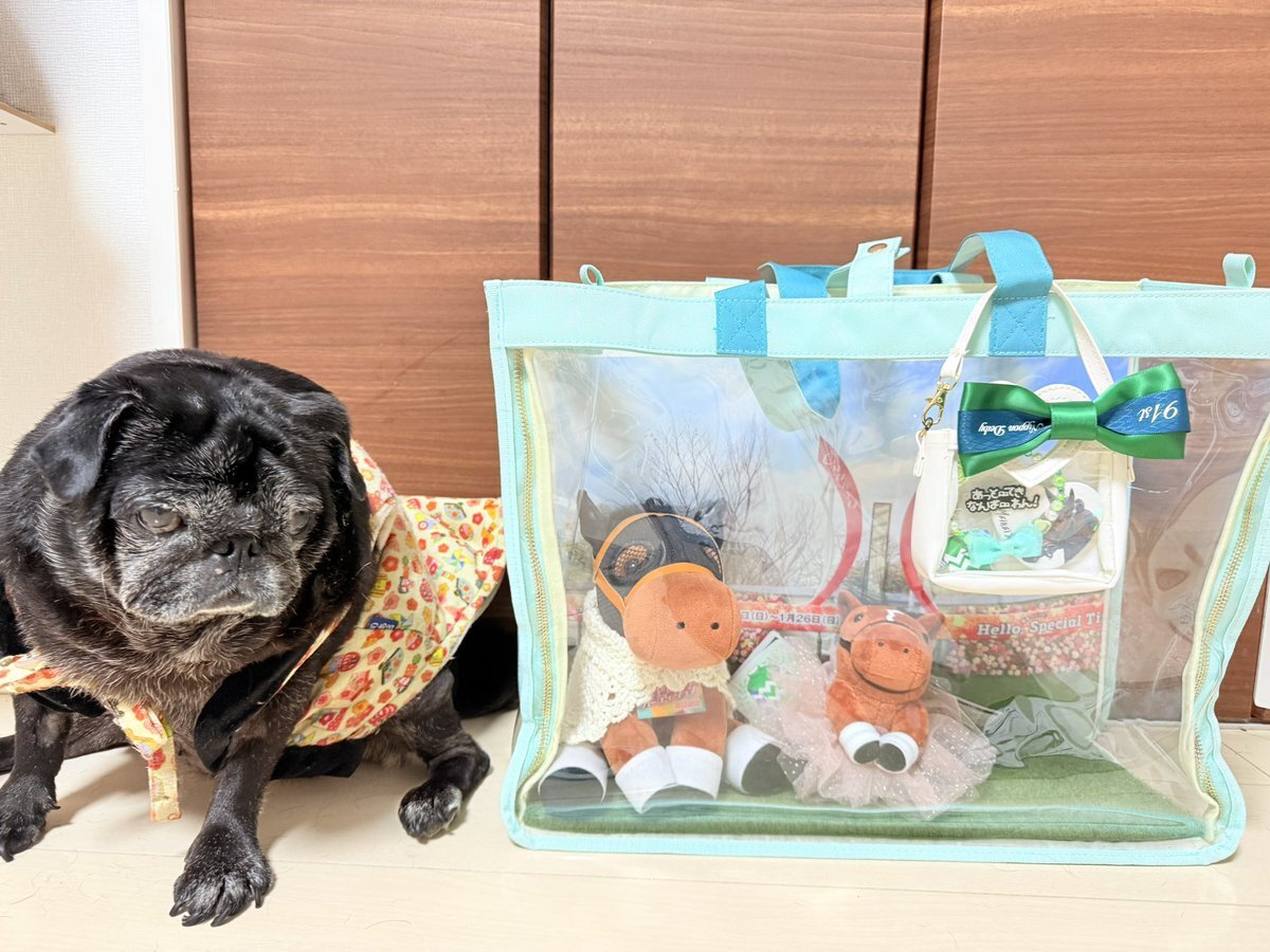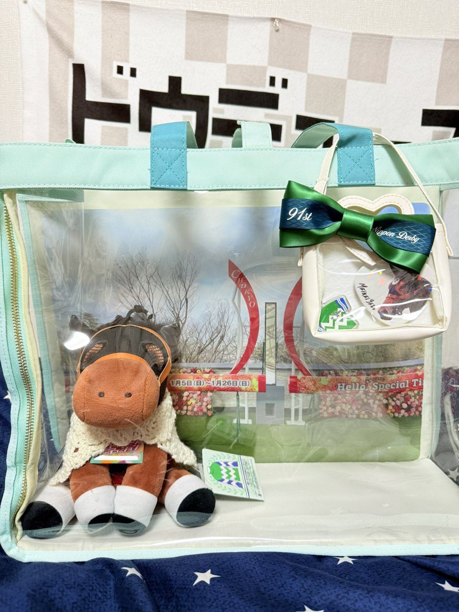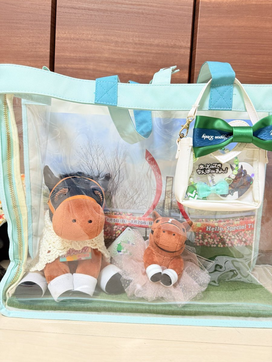 ドルフィートートバッグにA3で印刷してラミネート加工した中京のゴール板の写真(自分で撮った競馬場入口にあるやつ)を仕込んでみた! 底板に芝を敷いたら更にらしくなるかな…! #競馬ぬい撮り pic.x.com/rerKc9KQ5e