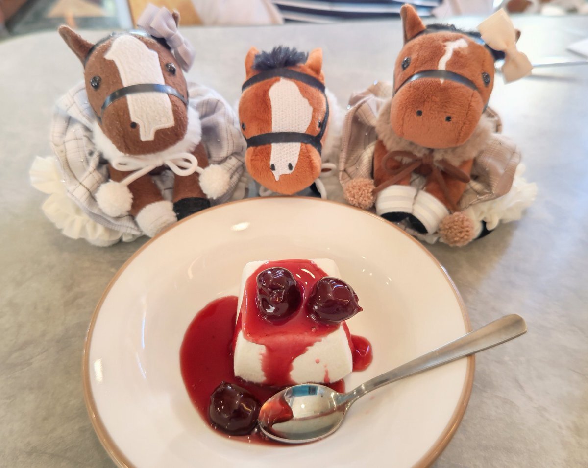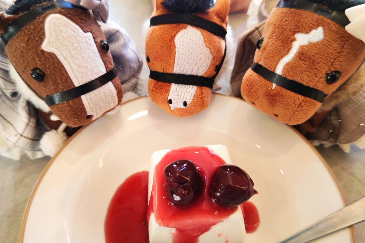 #競馬ぬい撮り #ぬい撮り 食後のデザート✨ サイゼリアの期間限定 チェリーソースの ミルクジェラート🍒🍨と メロちゃん&サラメロちゃんと エールちゃん🐴🐴🐴✨✨✨ pic.x.com/saPYysKT8T