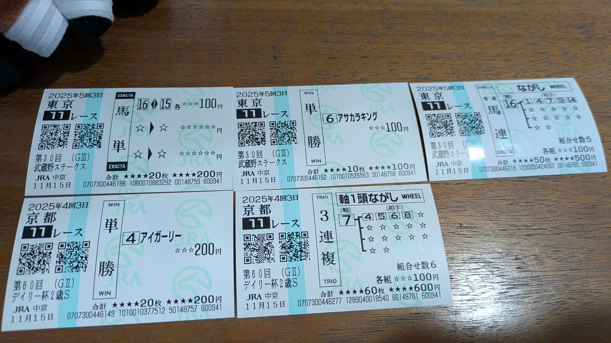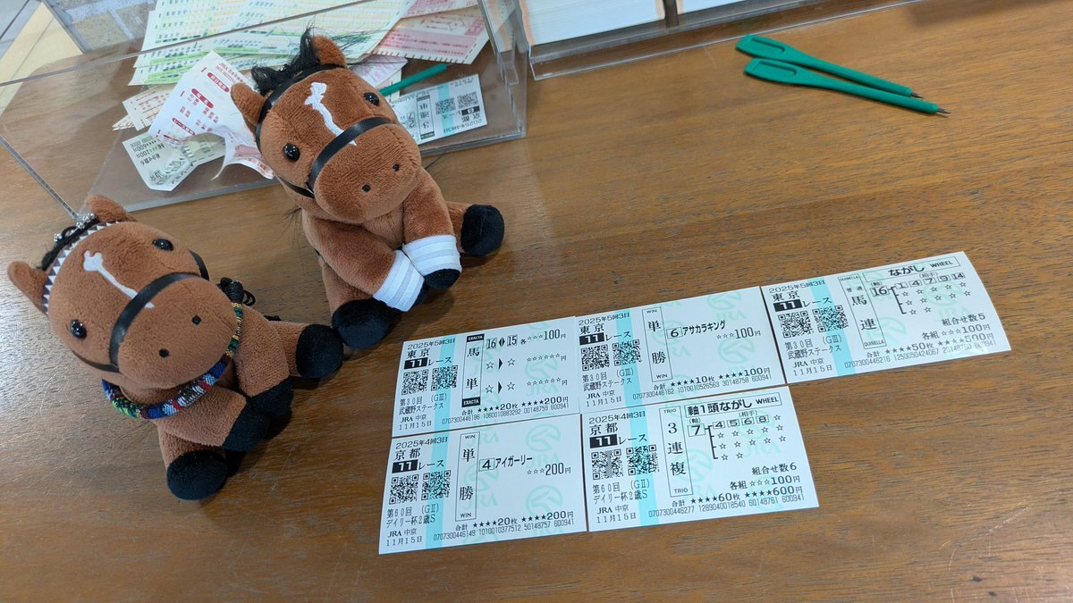 今日の #Raider競馬 #武蔵野S & #デイリー杯2歳S 両方とも的中🎯!!(830円+3230円=4060円) というわけで今日の成績は+2360円でした!! エール「先週から調子いいわね!」 おドウ「豊しゃんが頑張ったから当たったね!」 #アイドルホース #競馬ぬい撮り pic.x.com/F019ZBR5N5