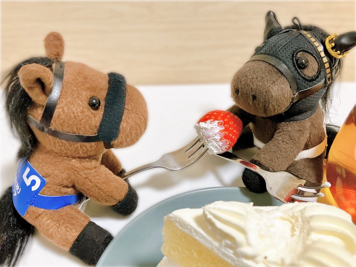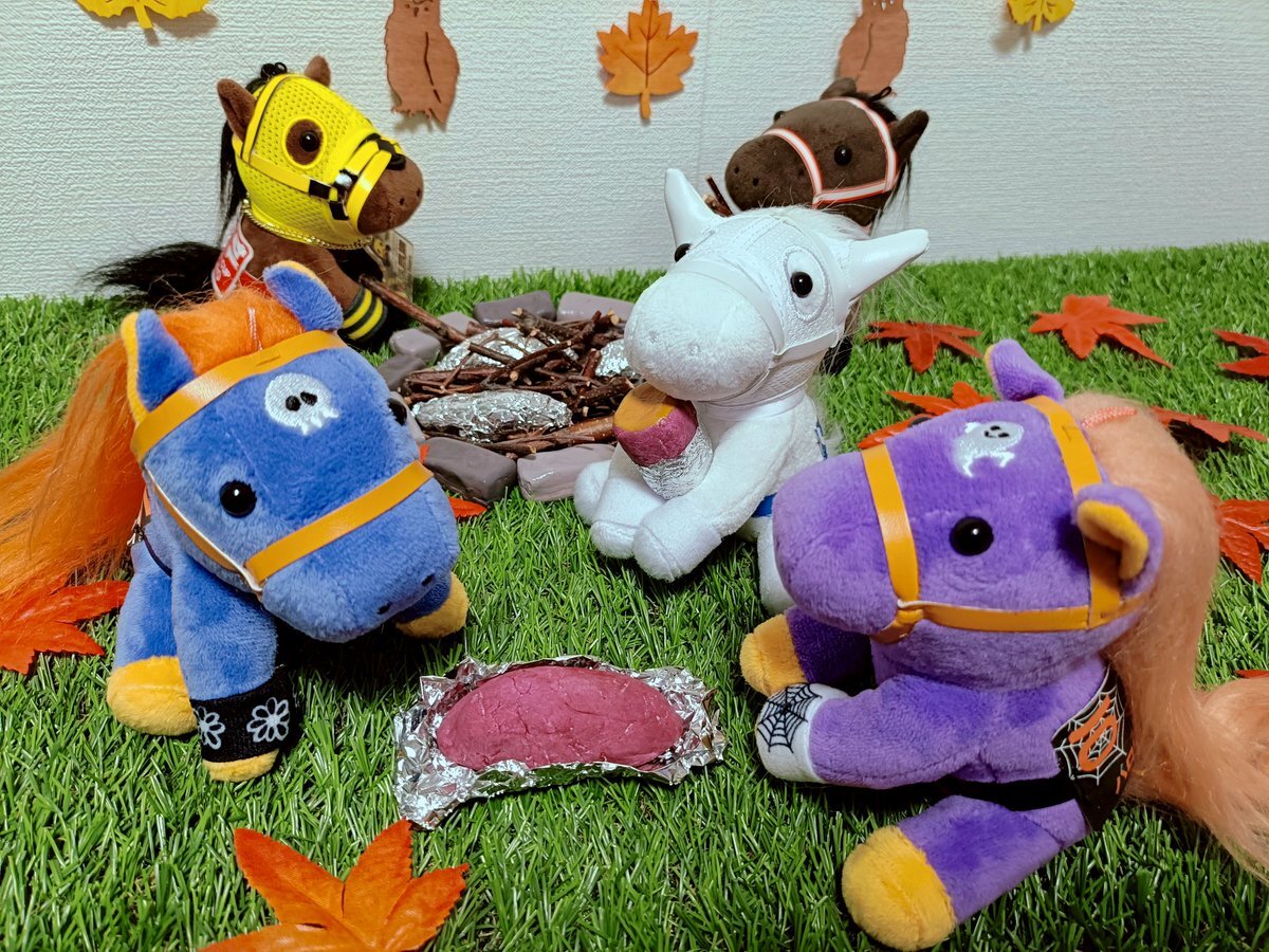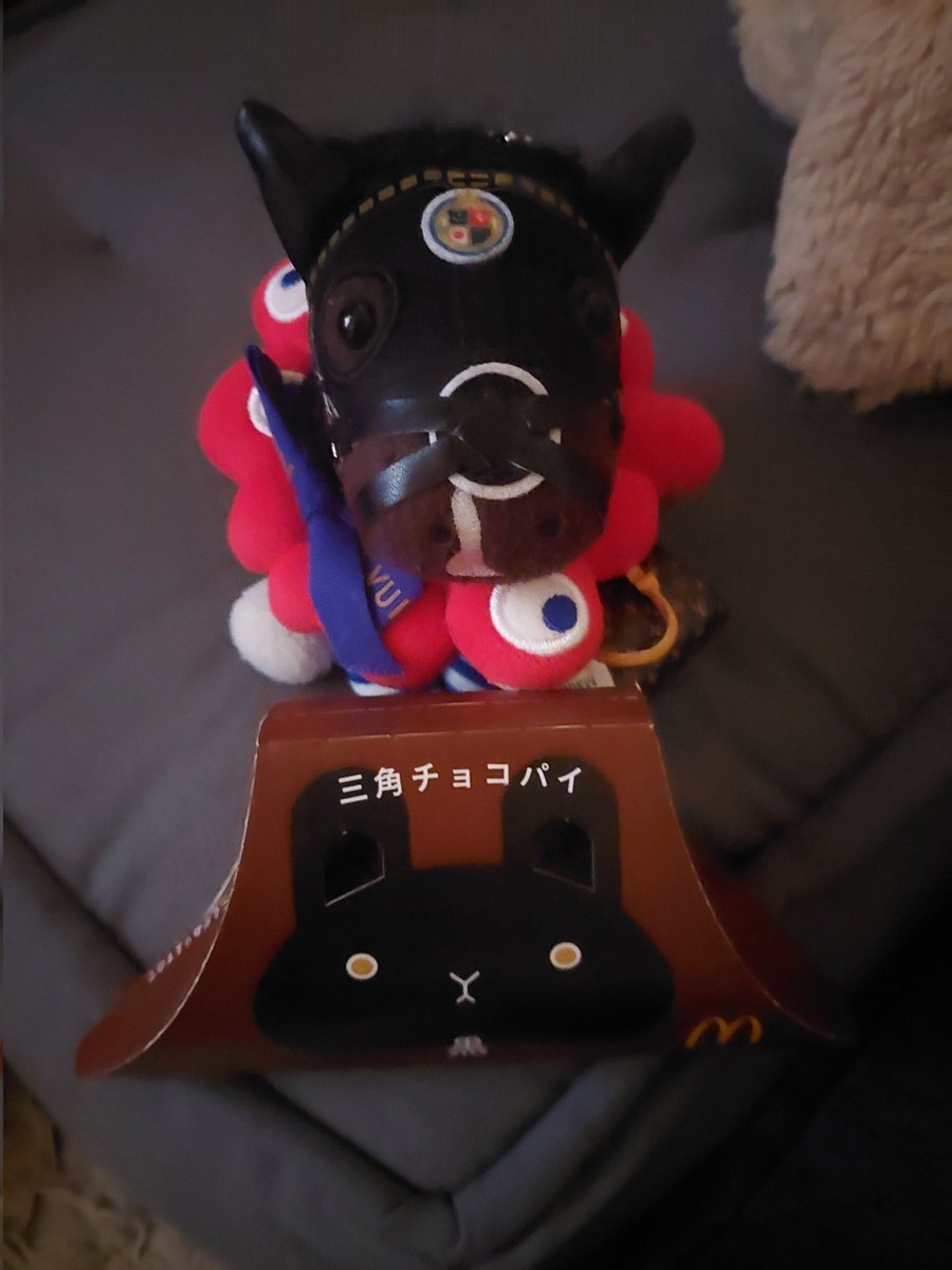 宝塚タ「こんな時間に三角チョコパイ食べちゃうもんね😋」 #タイトルホルダー #競馬ぬい撮り pic.x.com/XkDkFKak0J
