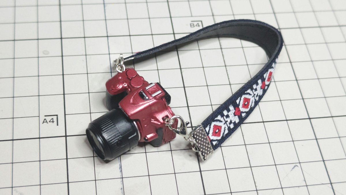 セリアの小物でカメラのストラップを作ってみたよ 持たせたかったけど腕が目線まで上がらないので首に提げておこうと思います #競馬手芸部 #競馬ぬい撮り pic.x.com/j4qxIsM6eq x.com/Tomo_kun_kun/s…