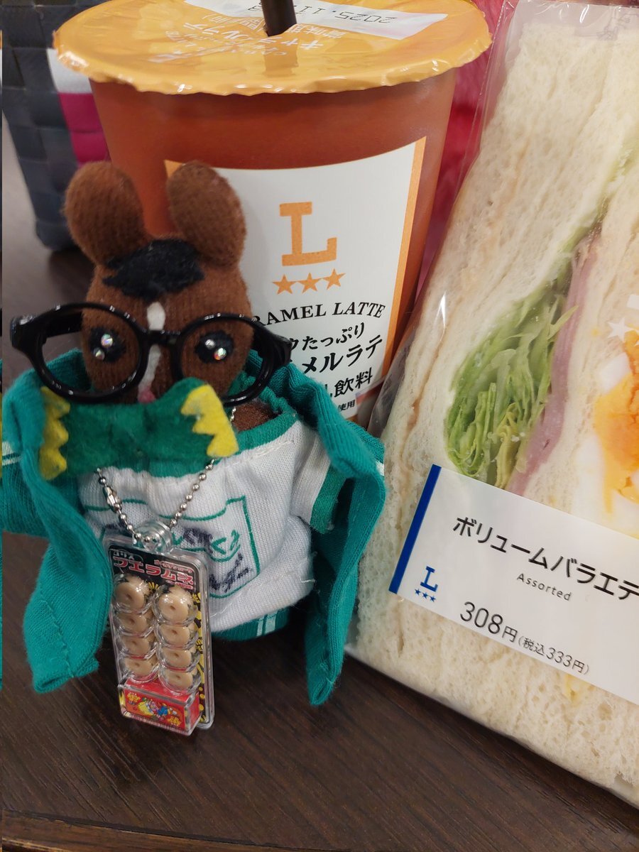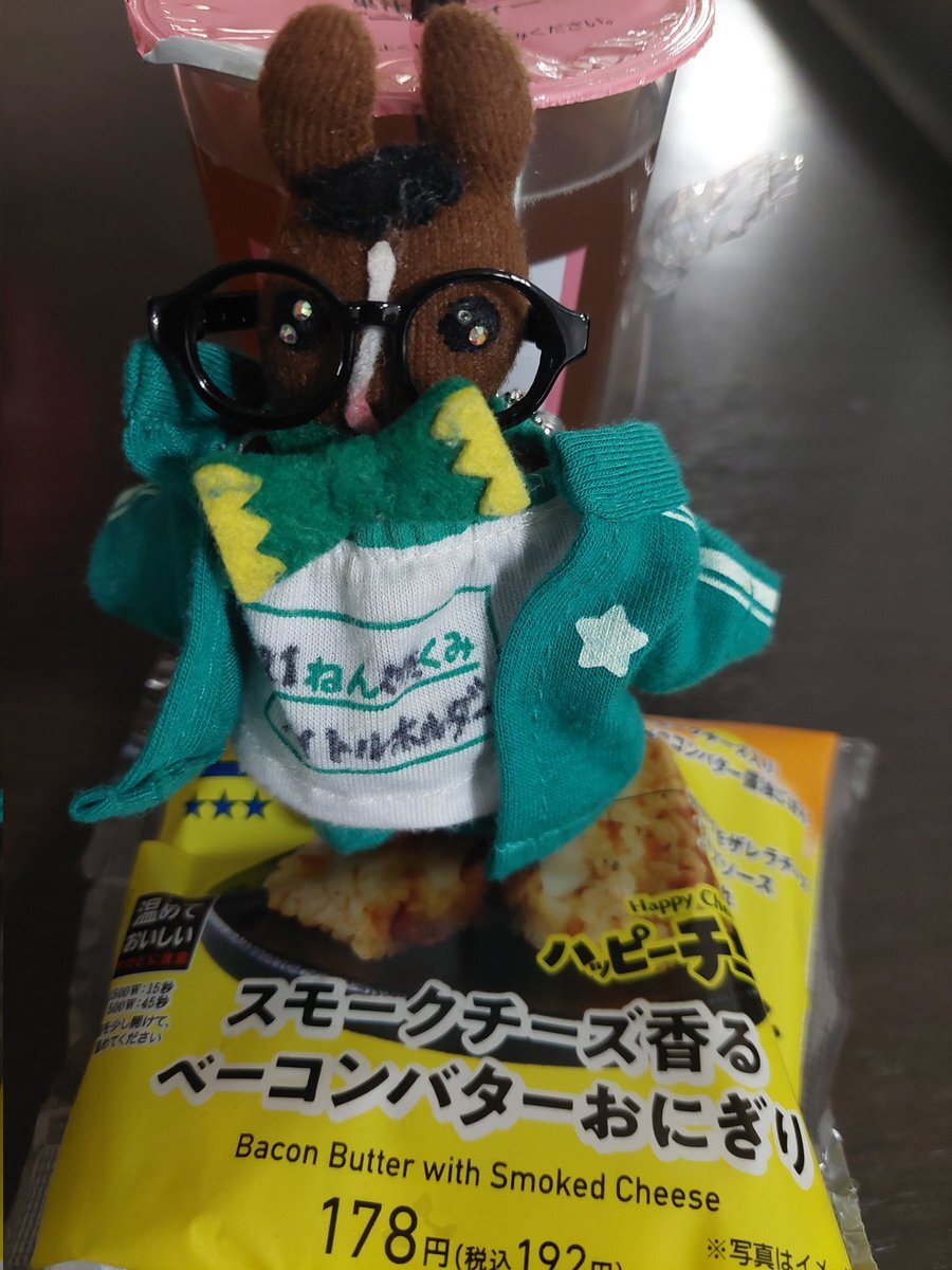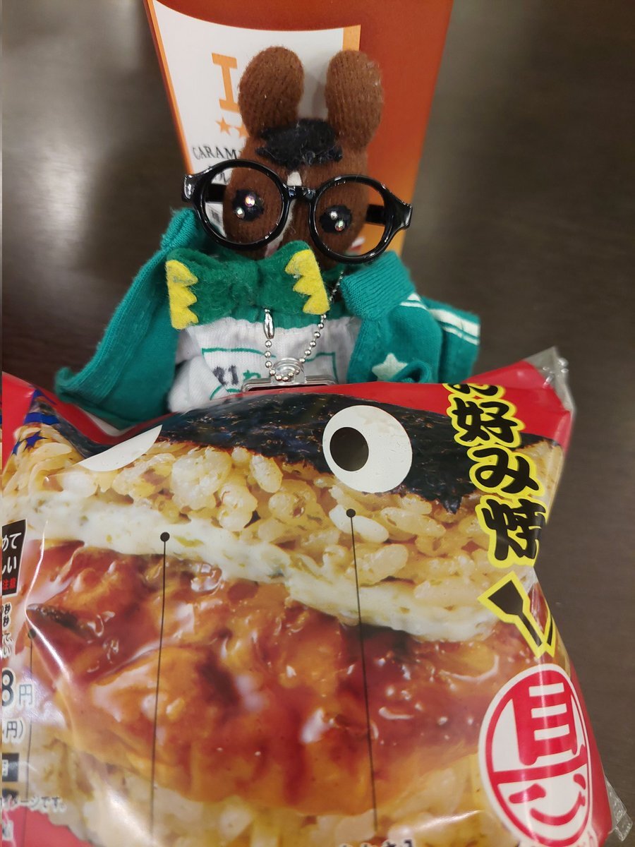 タ「わ~い、社畜とピクニック🍴 ローソンのお好み焼きおにぎり🍙です いっただきま~す😋」 #タイトルホルダー #競馬ぬい撮り pic.x.com/Tp7QL7Z5SL