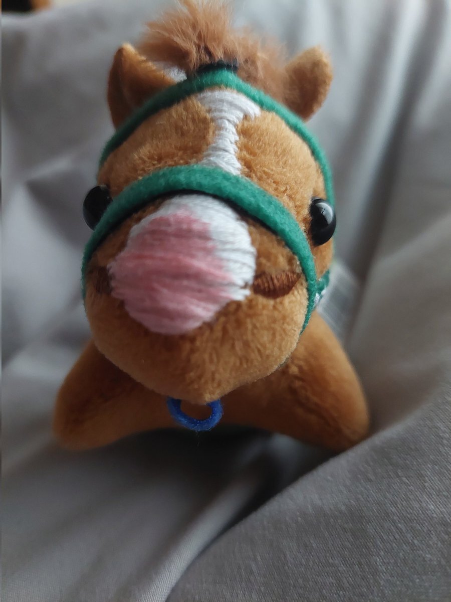 セリアの馬ぬいで、アルしゃんが完成🌟🌟🌟 Offしゃんなので、緑の無口に橋口厩舎の三ツ星 あご紐と分かりにくいけどちょんまげです #アルしゃん #アルナシーム #競馬ぬい撮り pic.x.com/UTZQ4yRyTK