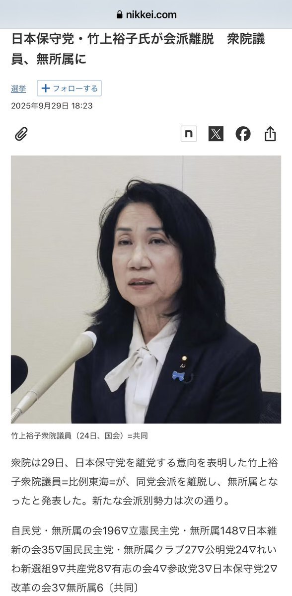 竹上さん。我々が保守党の名のもとに勝ち取った議席、何を勝手に持ち逃げしようとしてるんですか? #竹上ゆうこ議員の辞職を求めます #竹上裕子の辞職を求めます x.com/kakoeshi/statu…
