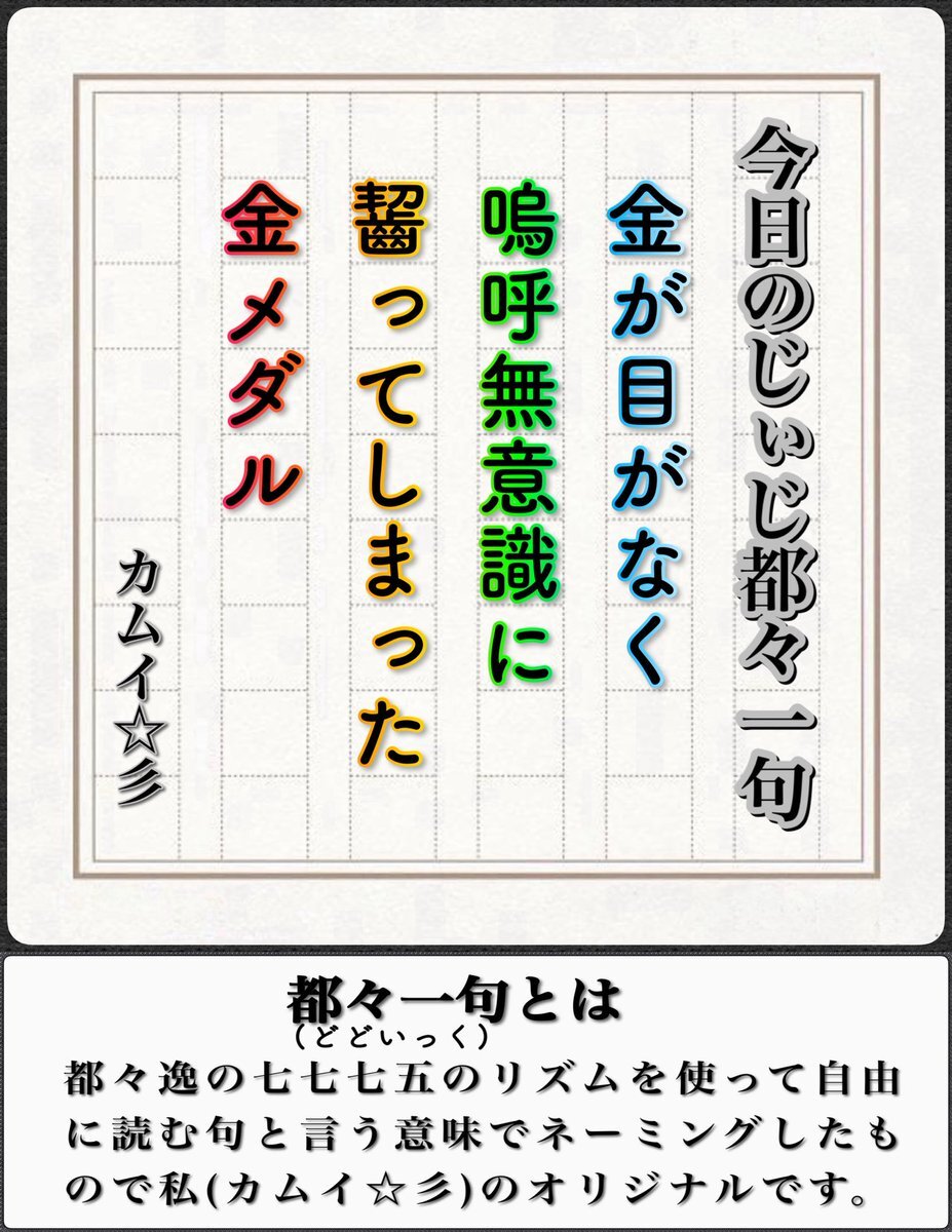 『今日のじぃじ都々一句』 政治系のニュースを中心に今話題になっている事を 七七七五の都々逸のリズムで読んでいます。 『金に目がなく 嗚呼無意識に 齧ってしまった 金メダル』 #竹上ゆうこの辞職を求めます #今日のじぃじ都々一句 #日本保守党 pic.x.com/kGRZRVXu5t
