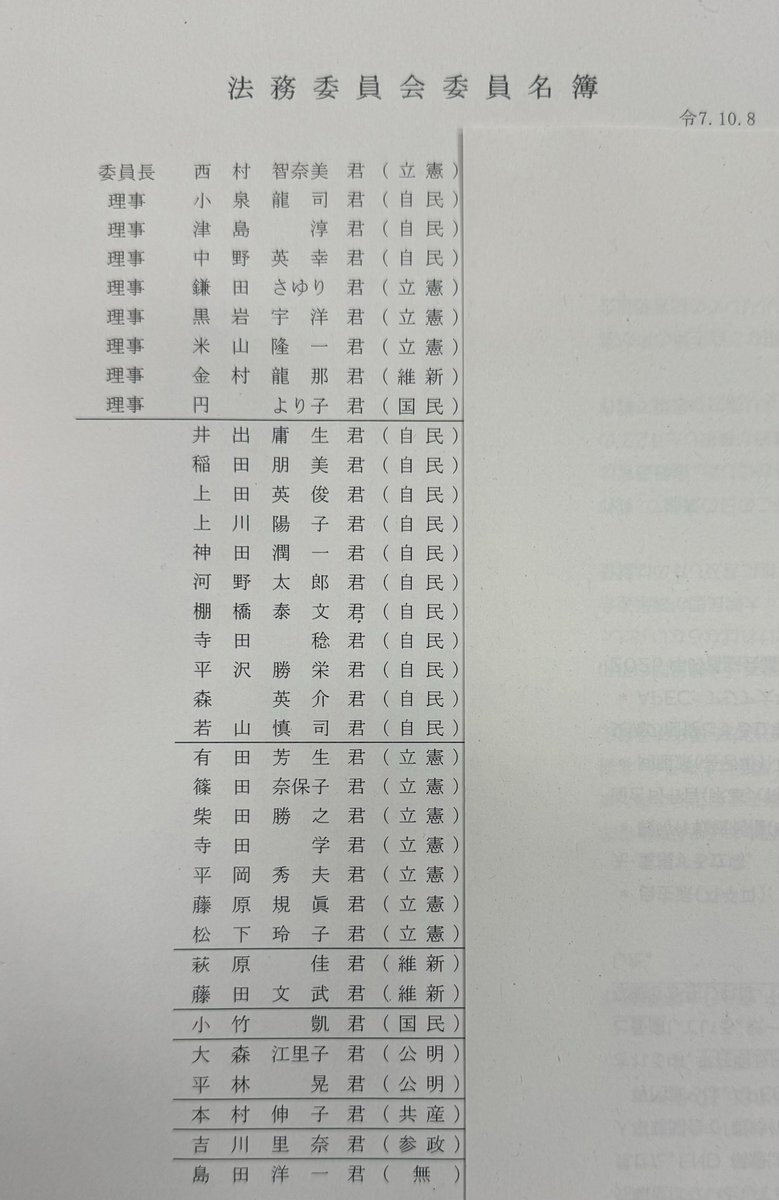衆議院の日本保守党議員は私一人となったため、本日付で、法務委員会に籍は残るものの、議院の規定により「無所属」扱いとなりました(名簿の一番下)。 質問時間がどうなるかは、まだ分かりません。 ともあれ与えられた条件の中で、国会活動に全力を尽くします。