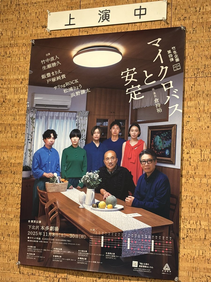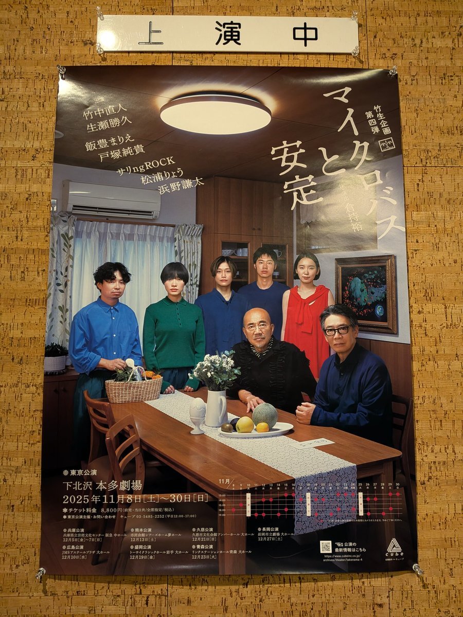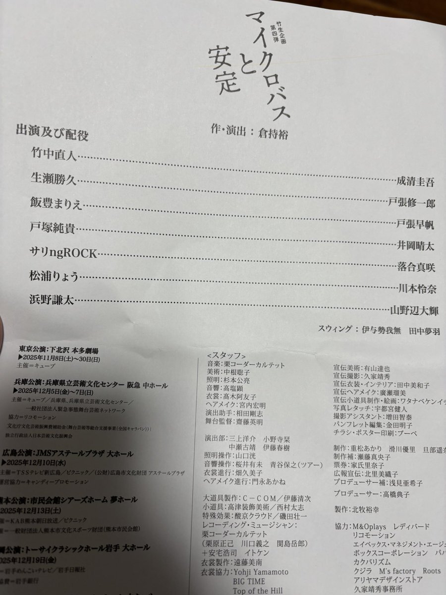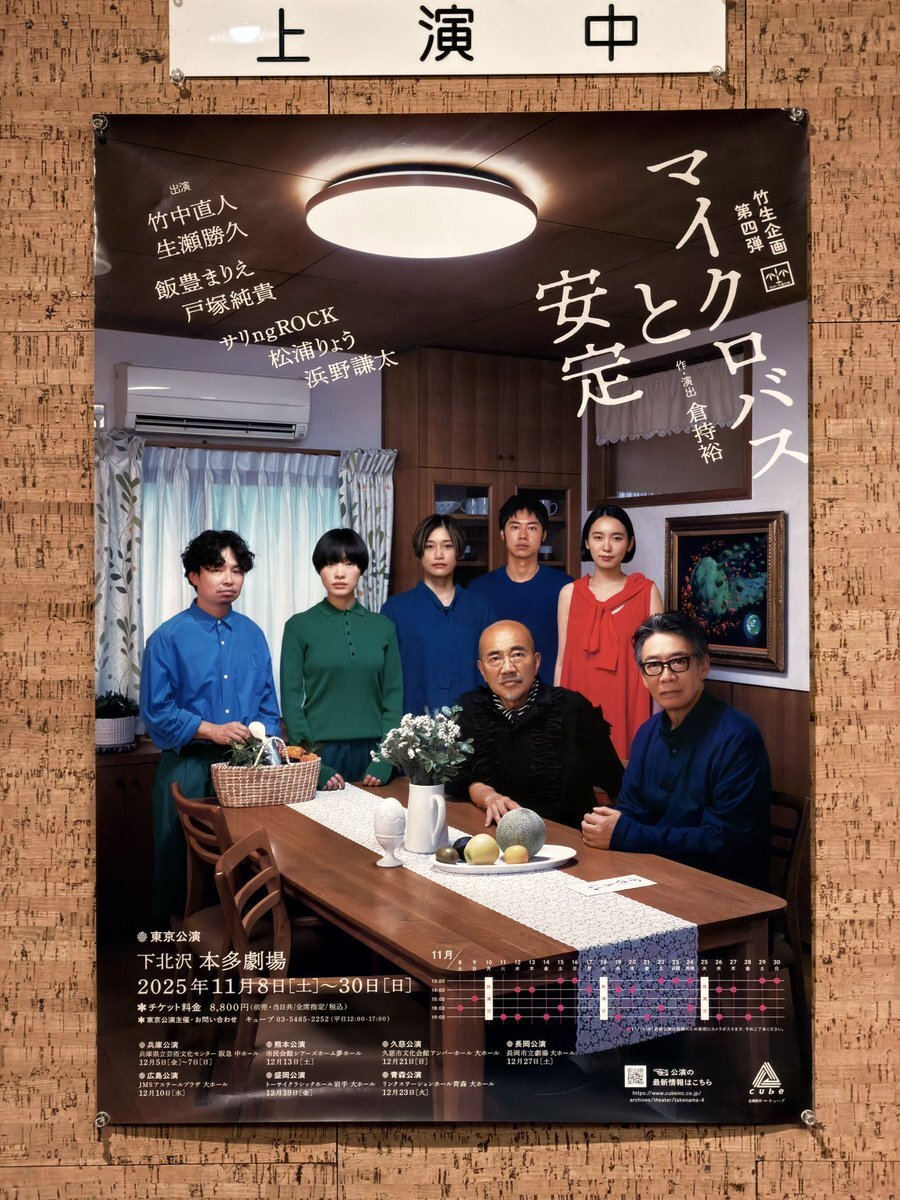 2025.11.19 本多劇場 竹生企画第四弾 マイクロバスと安定 本多劇場で芝居を観劇 これまで色んな芝居を観てきたけど、#竹中直人 と #生瀬勝久 の迫力は別格だった 個人的に映画よりも芝居は内容を理解するのが難しいんだけど、あっという間に「世界の終わり」の世界に引き込まれた✨ #竹生企画 pic.x.com/60ePQKn22g
