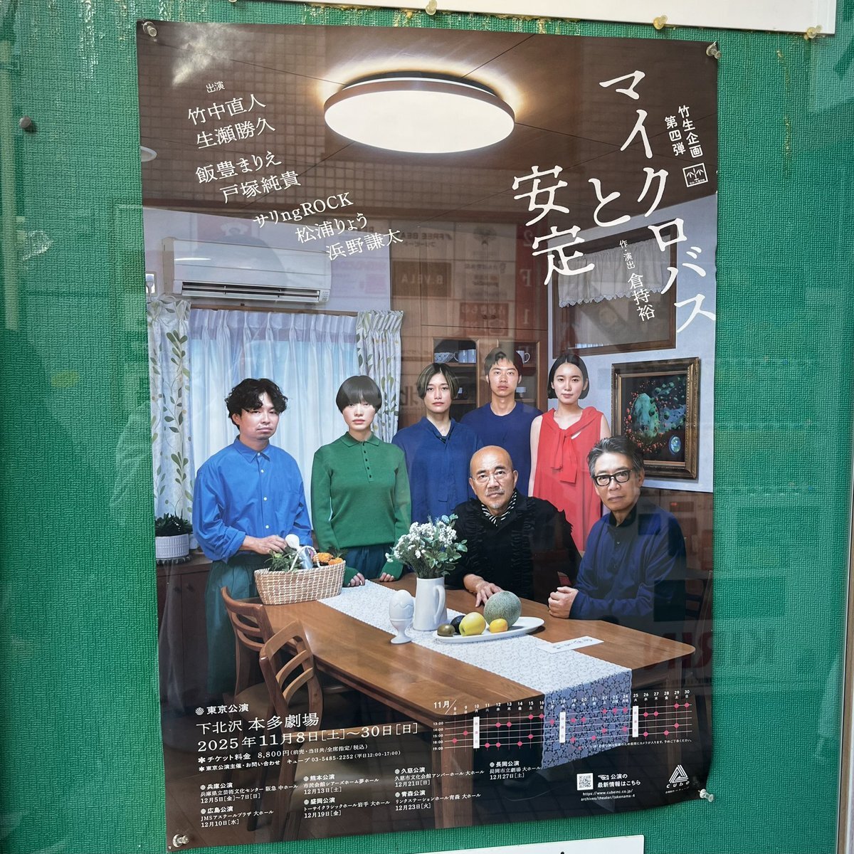 下北沢本多劇場で #竹生企画「#マイクロバスと安定」観ました!倉持裕さん作で竹中直人さん、生瀬勝久さんが間近で観れて最高でした!ハマケンさんも飯豊さんもみなさん素敵で、めちゃ良かったです!オススメ! pic.x.com/VhUWHyid4w